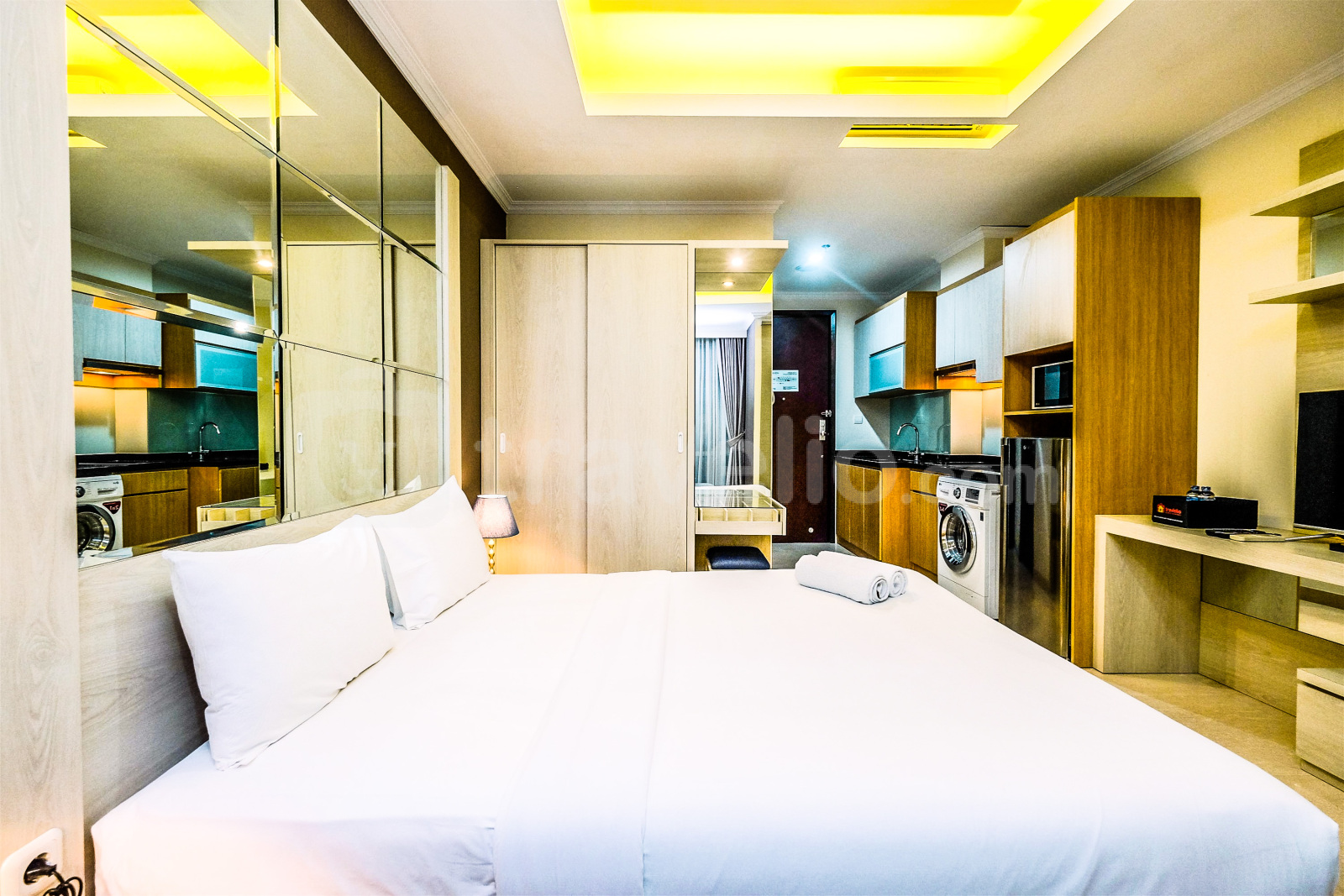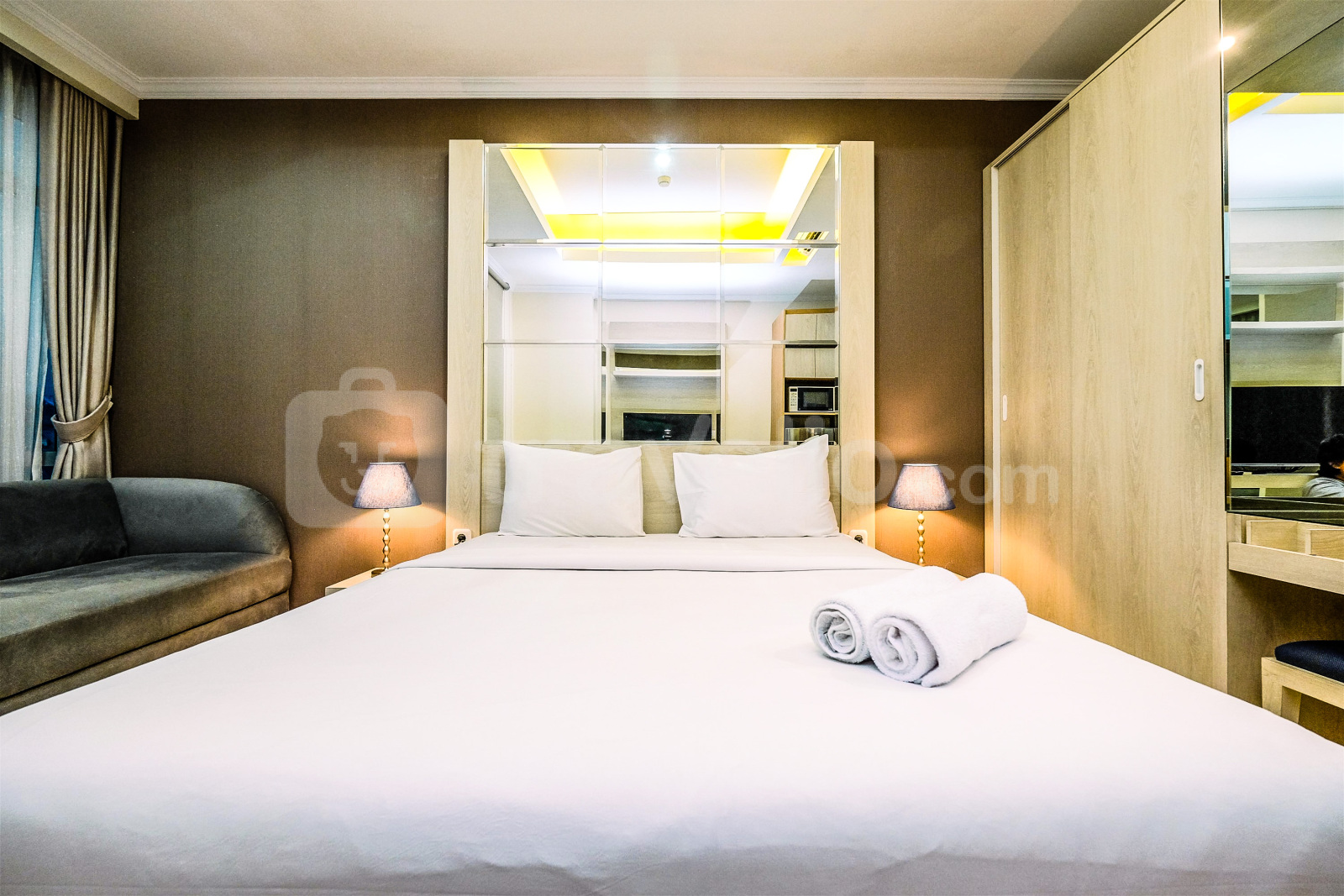 Unit apartemen bertipe Studio ini memiliki luas 32 meter persegi. Setiap ruangan di unit ini memiliki desain Modern yang membuat unit ini semakin terasa nyaman. Unit ini juga menyediakan fasilitas pendukung dalam ruangan seperti pemanas air dan microwave. Setiap kamar tidur memiliki kasur dengan tipe Queen Bed (160x200) serta dibalut dengan linen berkualitas tinggi. Bangunan apartemen ini dapat dijangkau dengan kendaraan pribadi dan kendaraan umum.