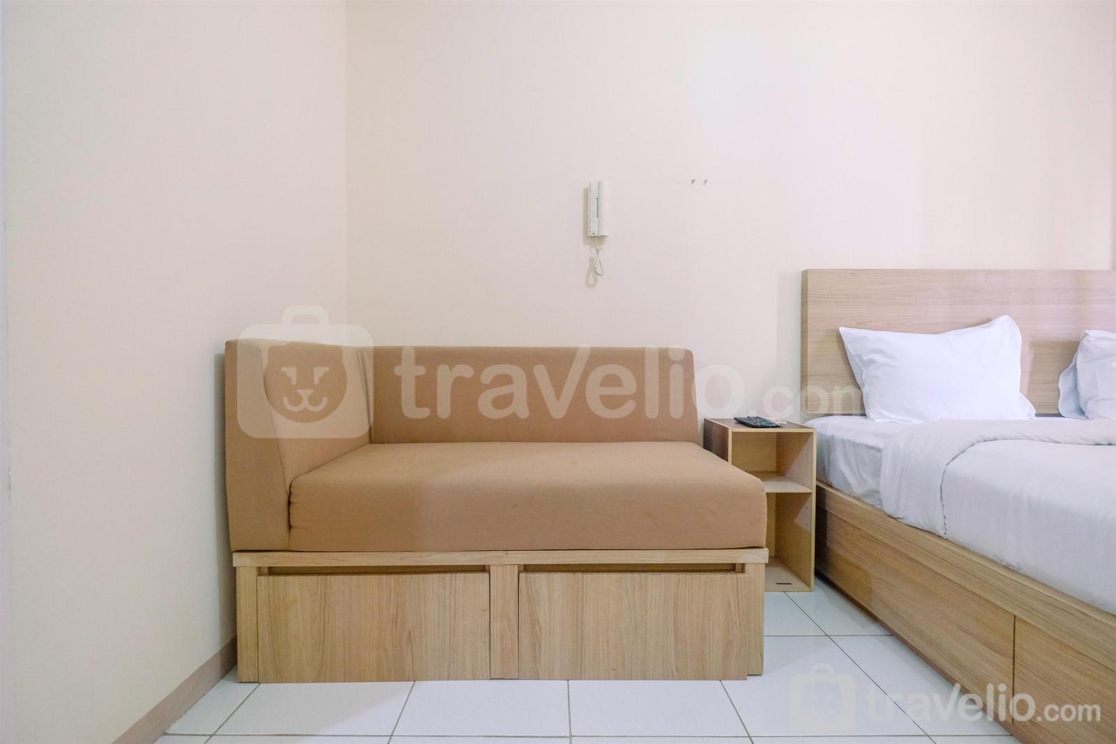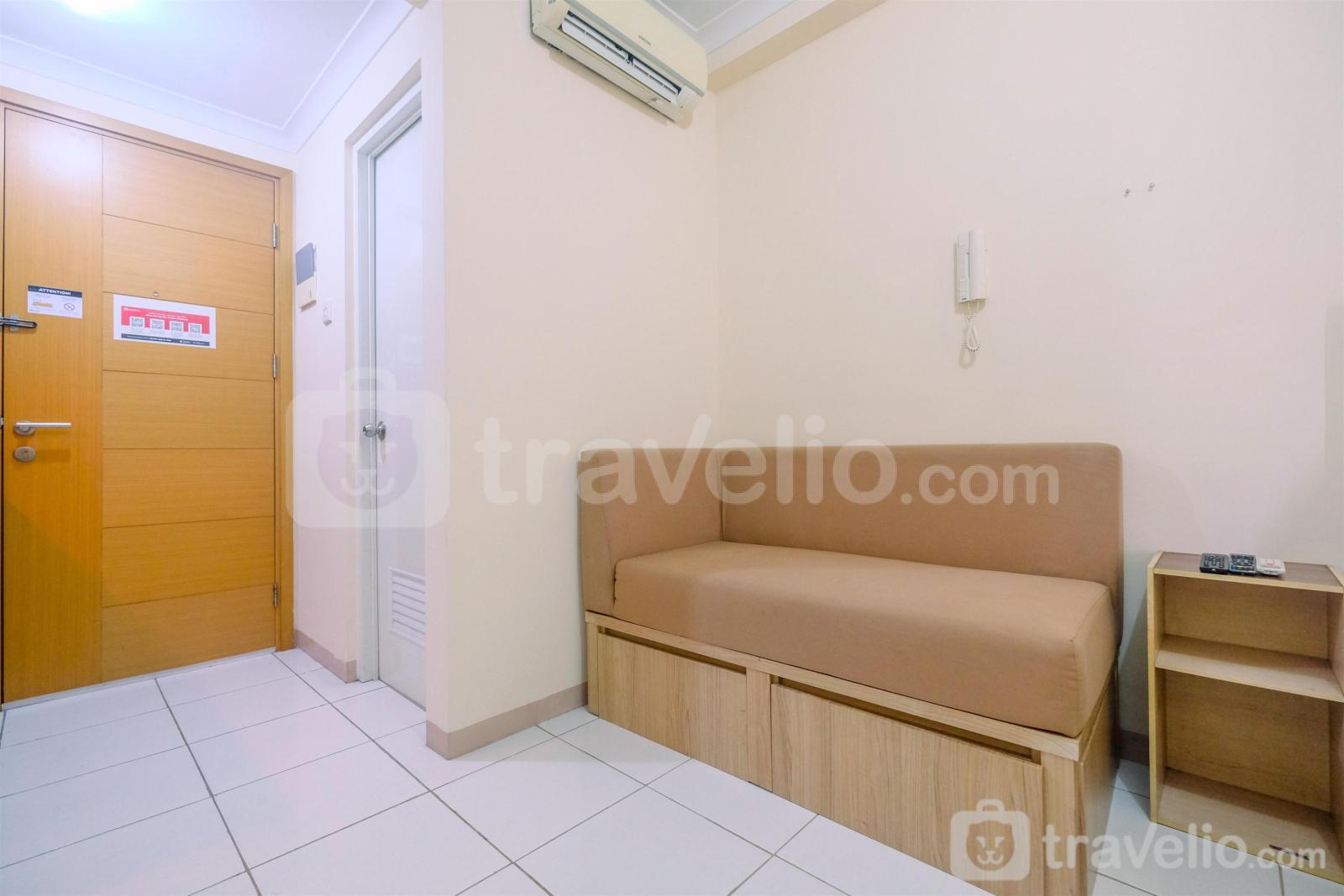 Ruangan apartemen ini berdesain minimalis. Unit apartemen di Travelio dapat disewa secara harian, bulanan, dan tahunan.