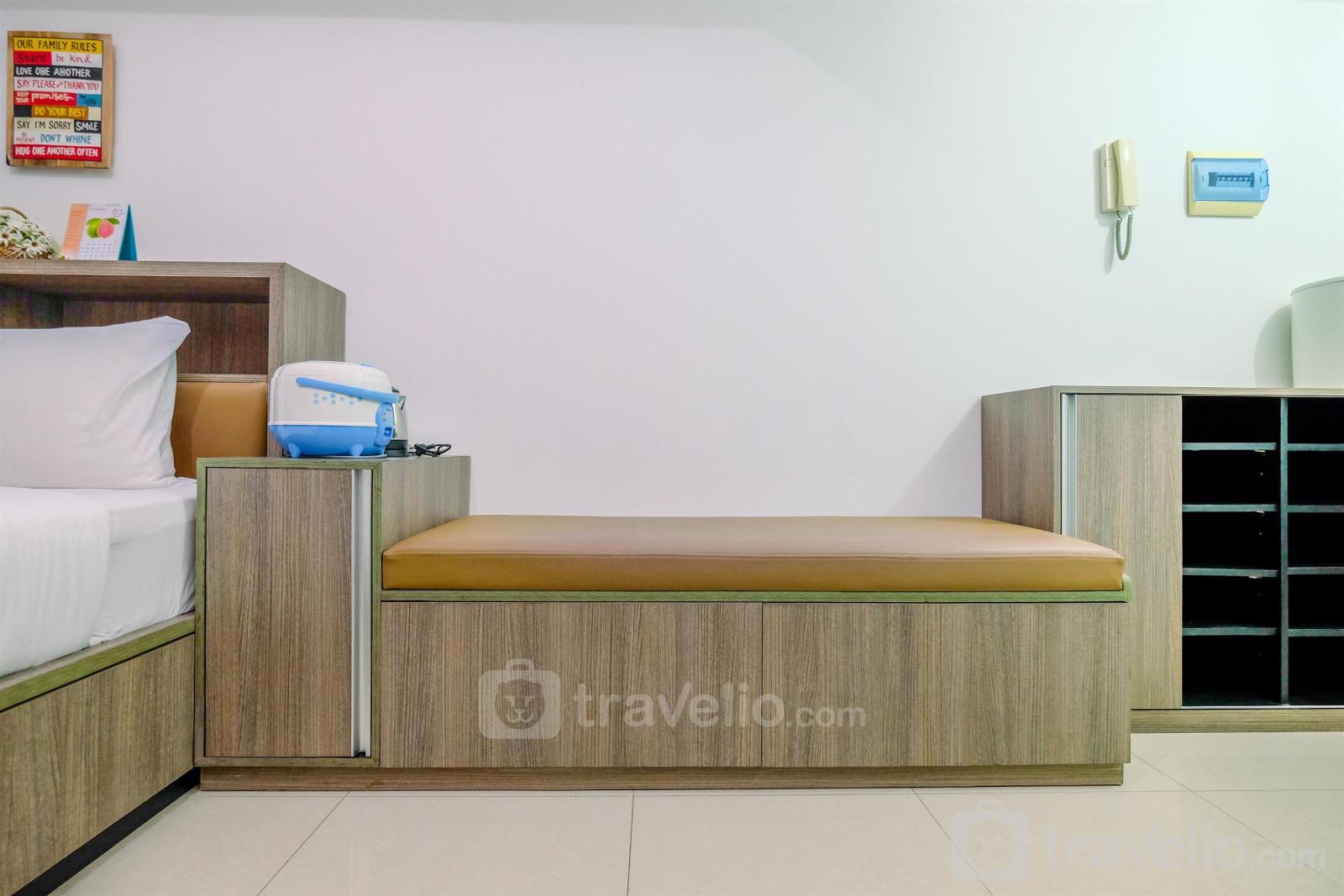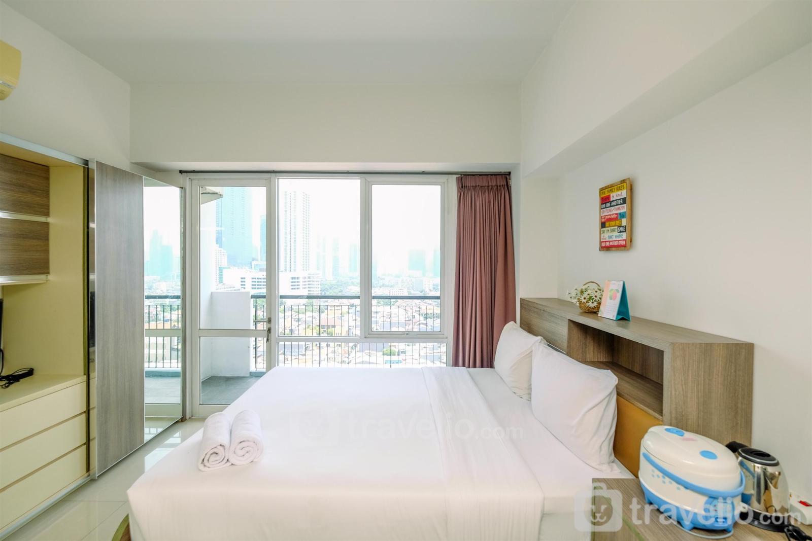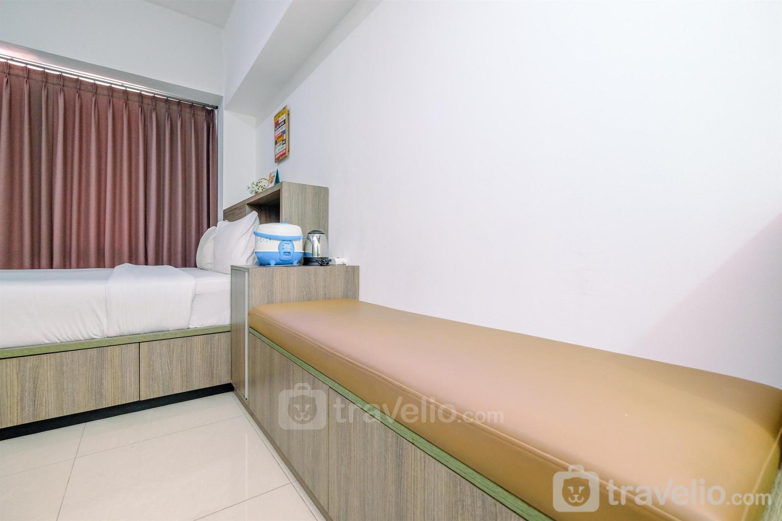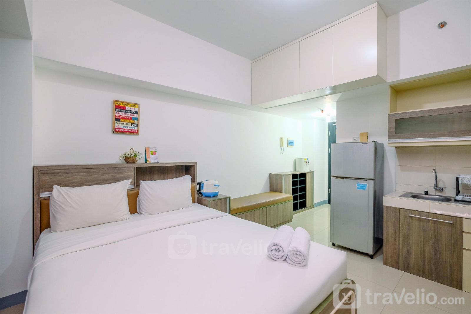 Unit apartemen yang bertipe StudioBR ini terdiri dari yang sangat sempurna untuk perjalanan liburan maupun bisnis. Selain itu, unit ini memiliki luas 31.98. Dilengkapi dengan Queen Bed (160x200) yang dibalut dengan linen kualitas hotel bintang. Unit ini memiliki sentuhan dekorasi agar anda dapat merasa santai dan nyaman.Hal lain yang perlu diketahui, unit ini memiliki fasilitas dan peralatan yang akan membuat pengalaman menginap anda lebih menarik, seperti pemanas air. Unit apartemen ini tersedia untuk disewa secara harian, bulanan, dan tahunan.