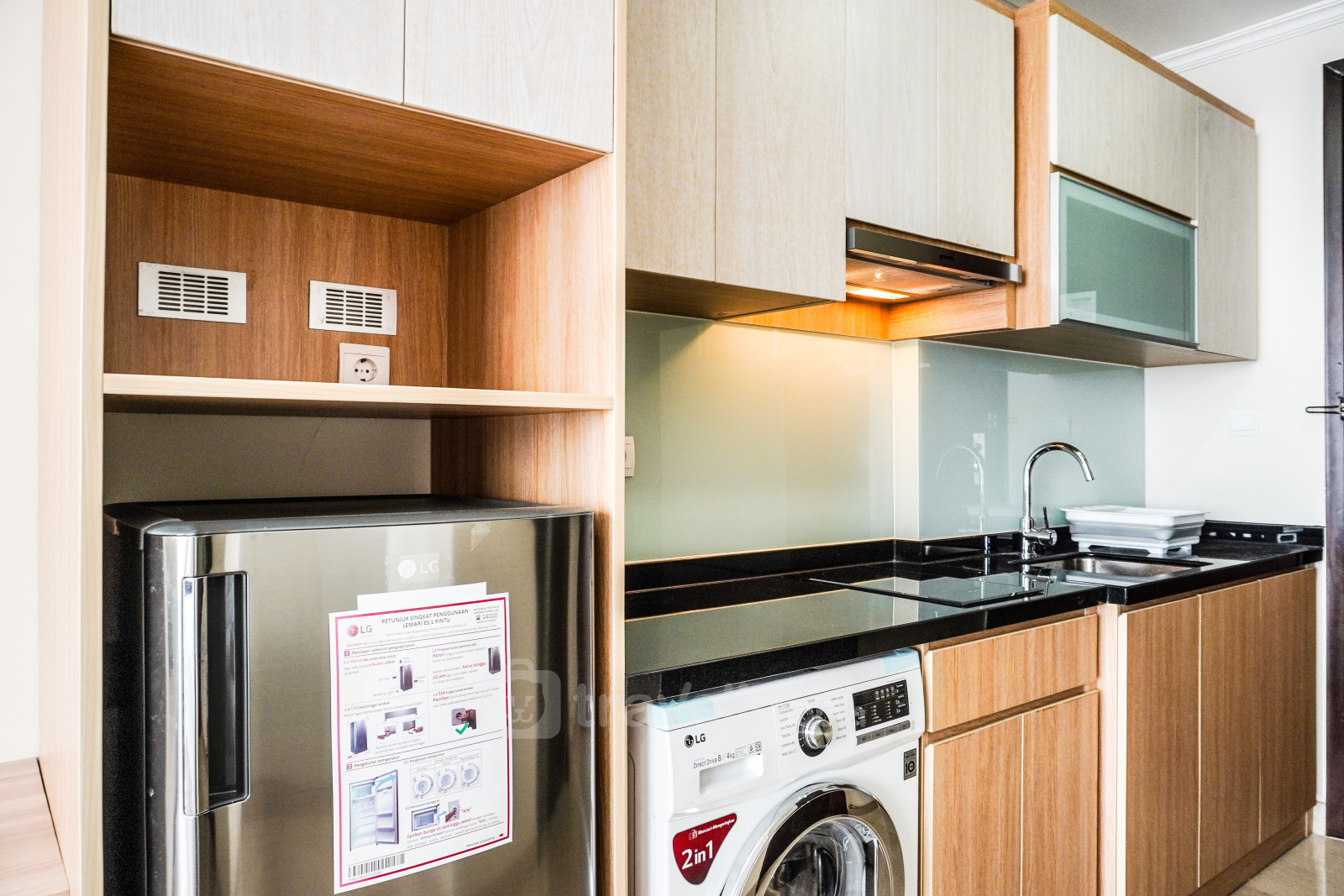 Apartemen studio ini memiliki ukuran yang nyaman, yaitu 32 meter persegi, dengan tata letak kamar tidur studio yang terencana baik dan satu kamar mandi. Dilengkapi dengan fasilitas penting seperti TV, kulkas, dan mesin cuci, apartemen ini cocok untuk individu atau pasangan yang mencari gaya hidup perkotaan yang praktis.