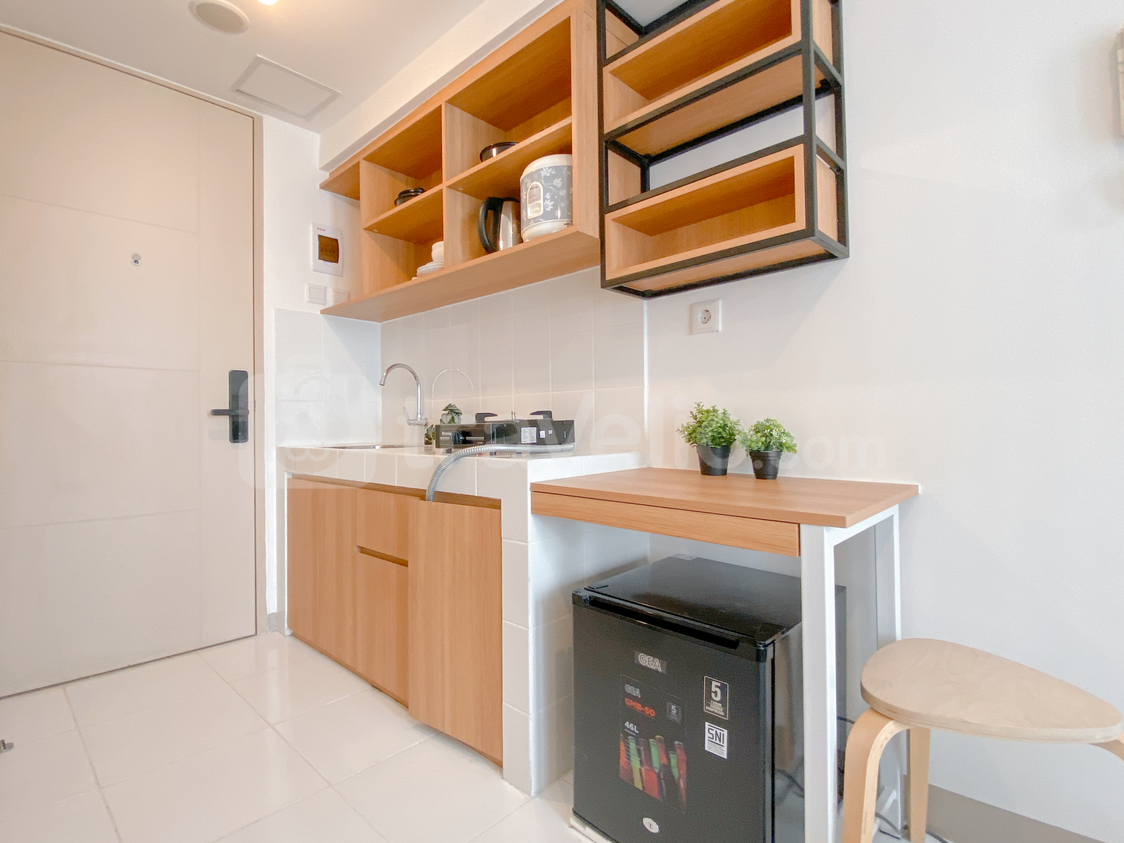 Rasakan kenyamanan tinggal di studio bergaya hangat dengan sentuhan kayu alami di Apartemen Tokyo Riverside PIK 2. Unit ini berukuran 21 sqm, dilengkapi dengan fasilitas penunjang seperti TV, kulkas, dan dapur pribadi untuk menunjang aktivitas harian Anda.