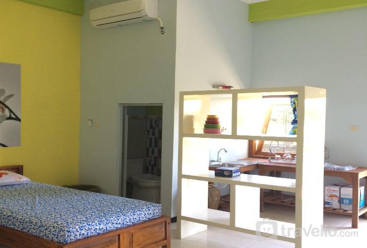 Terdapat tiga kamar tidur dengan tipe berbeda. Tipe kamar yang pertama Deluxe Bed Sunset View dilengkapi dengan fasilitas kasur ukuran double, selimut, lemari pakaian, pendingin ruangan, dan televisi untuk hiburan Anda. Area kamar mandi pribadi yang difasilitasi shower, handuk, dan perlengkapan mandi lainnya.