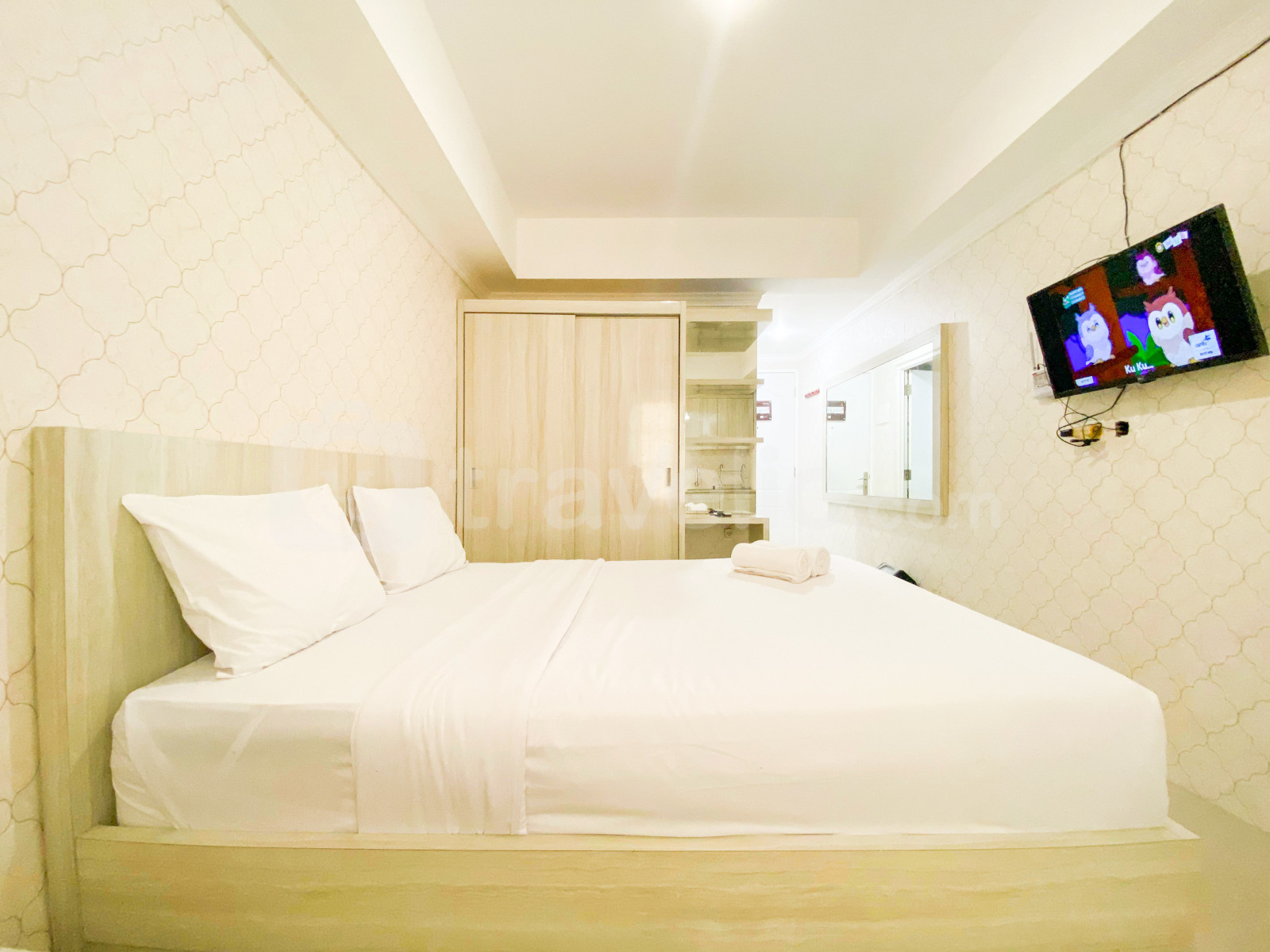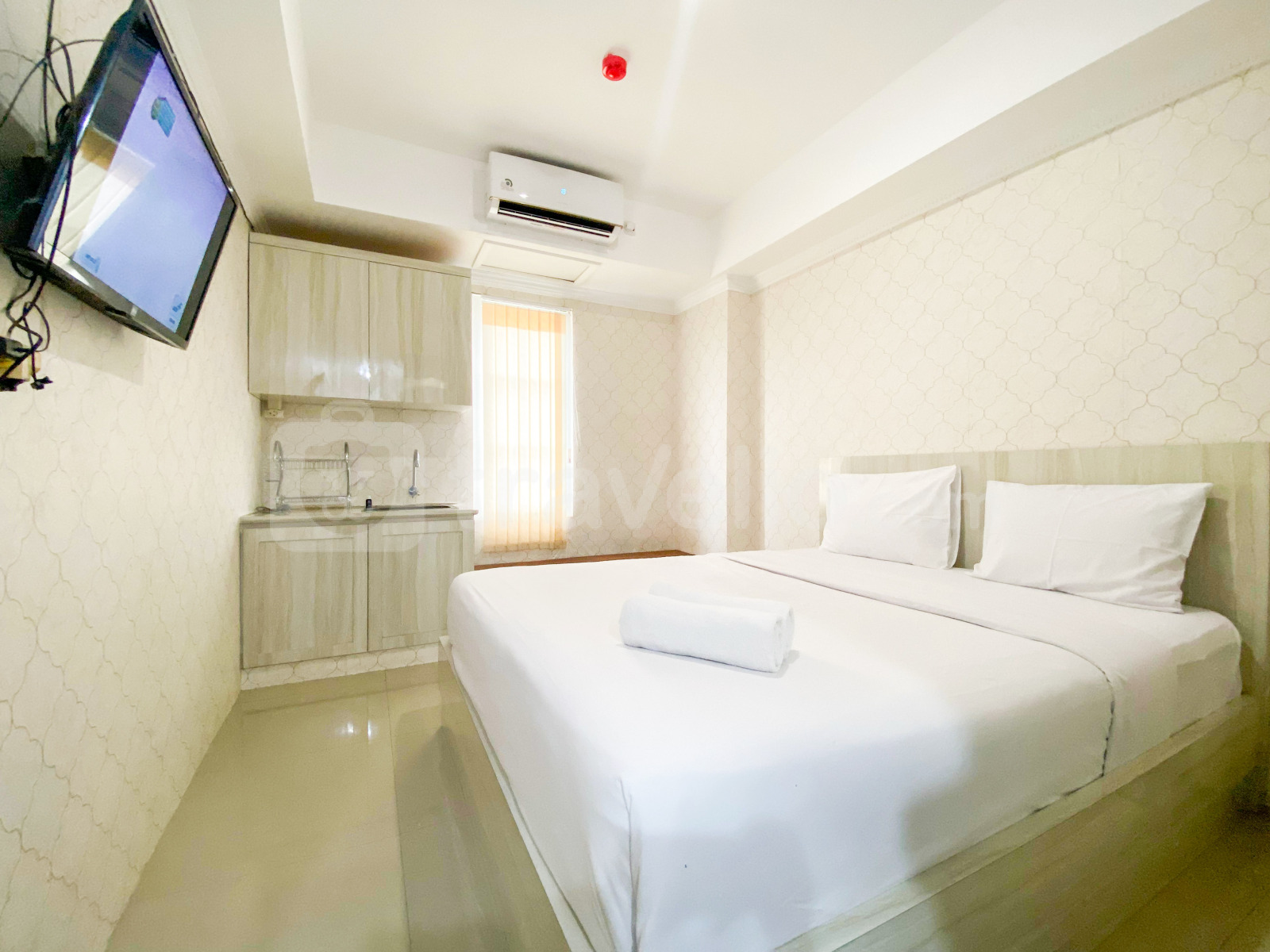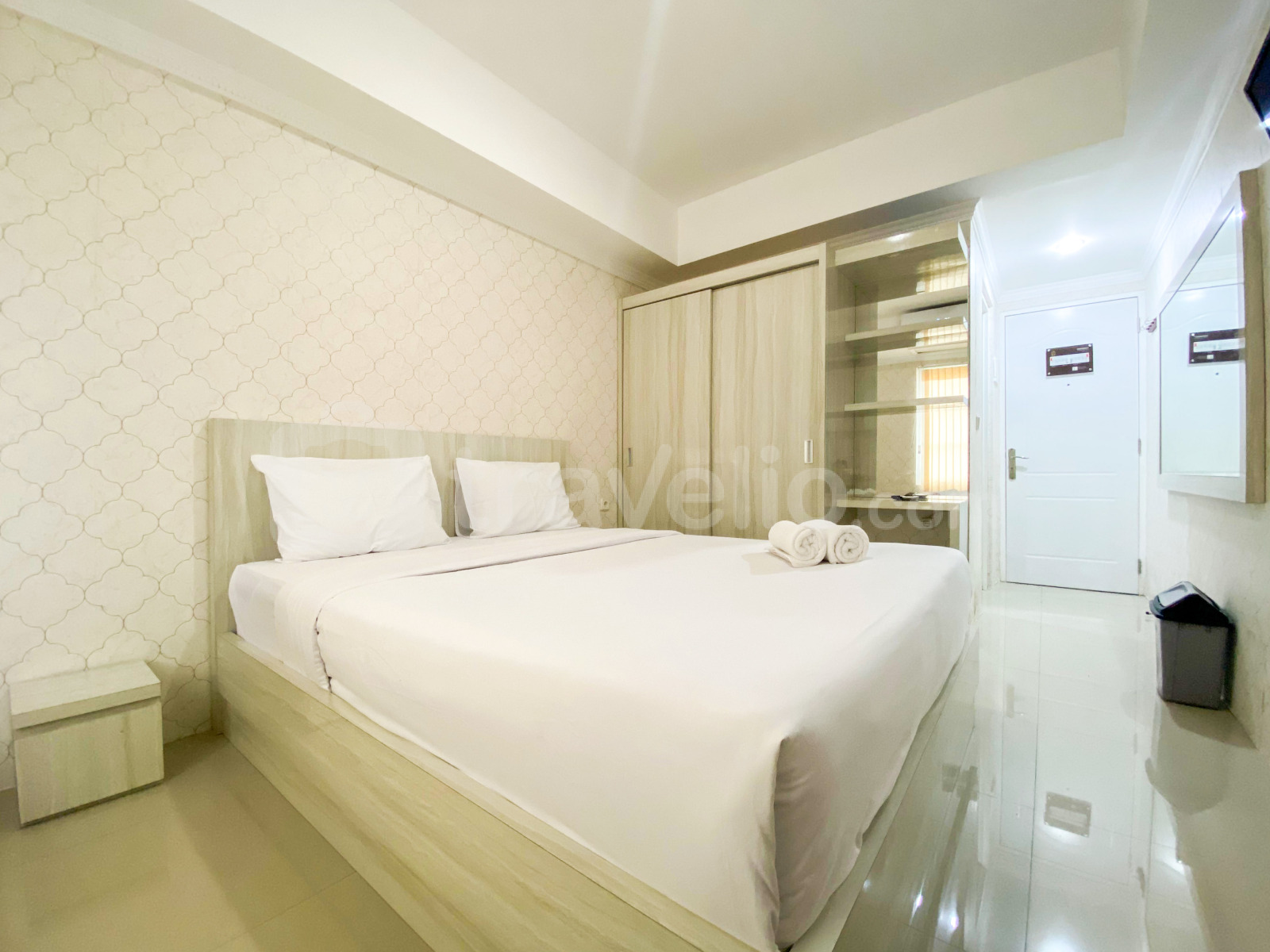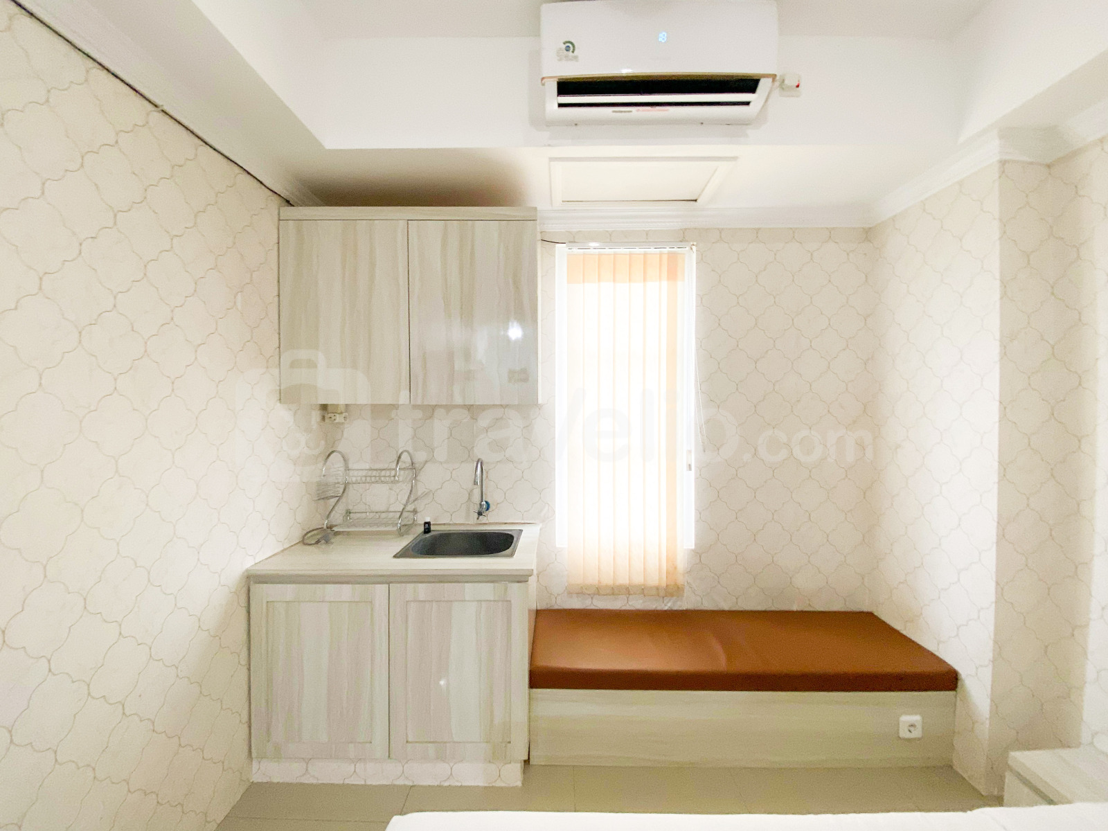 Perkenalkan, Simply Look and Homey Studio Paltrow City Apartment By Travelio. Apartemen studio ini menawarkan ruang tinggal yang nyaman dengan ukuran 25,5 meter persegi, ideal untuk individu atau pasangan yang mencari gaya hidup perkotaan yang praktis. Unit ini dilengkapi dengan lengkap dengan peralatan penting termasuk TV, kulkas, dan pemanas air, memastikan kenyamanan dan kemudahan bagi penghuni. Gedung ini menyediakan keamanan 24 jam, memastikan lingkungan tinggal yang aman dan terlindungi bagi semua penghuni.