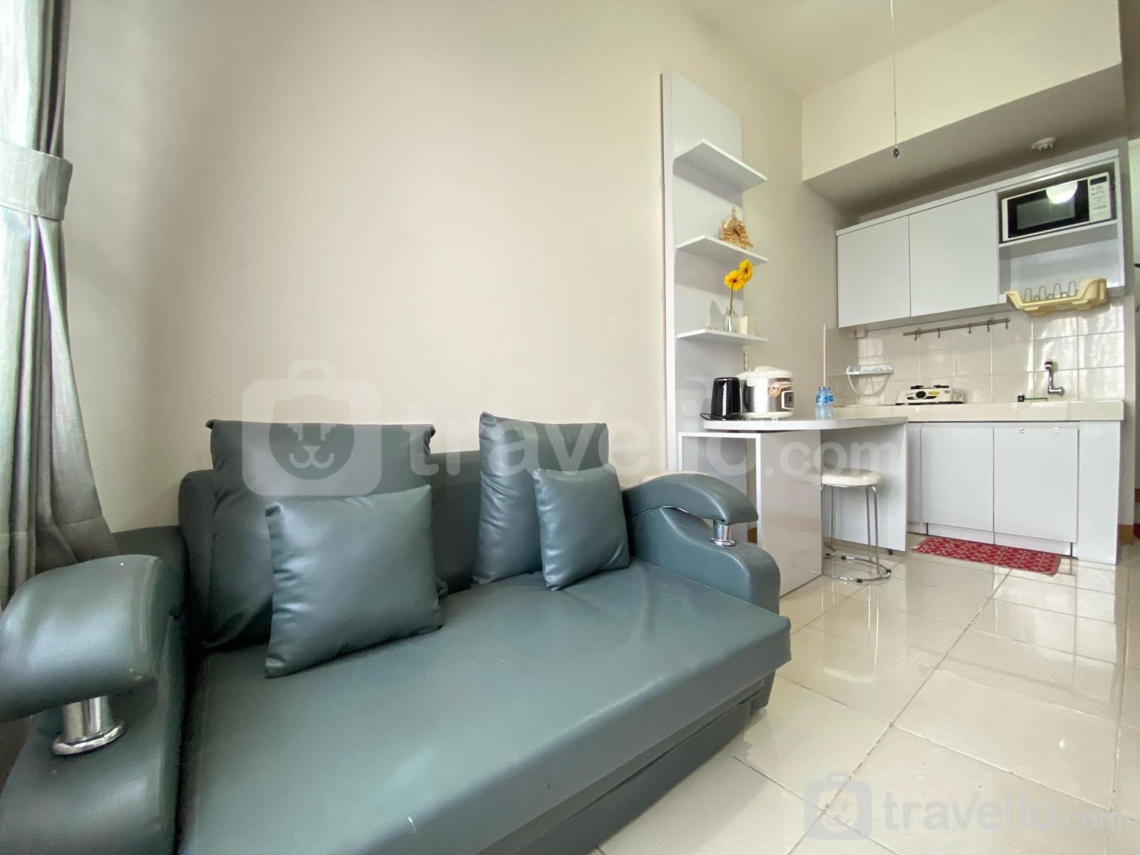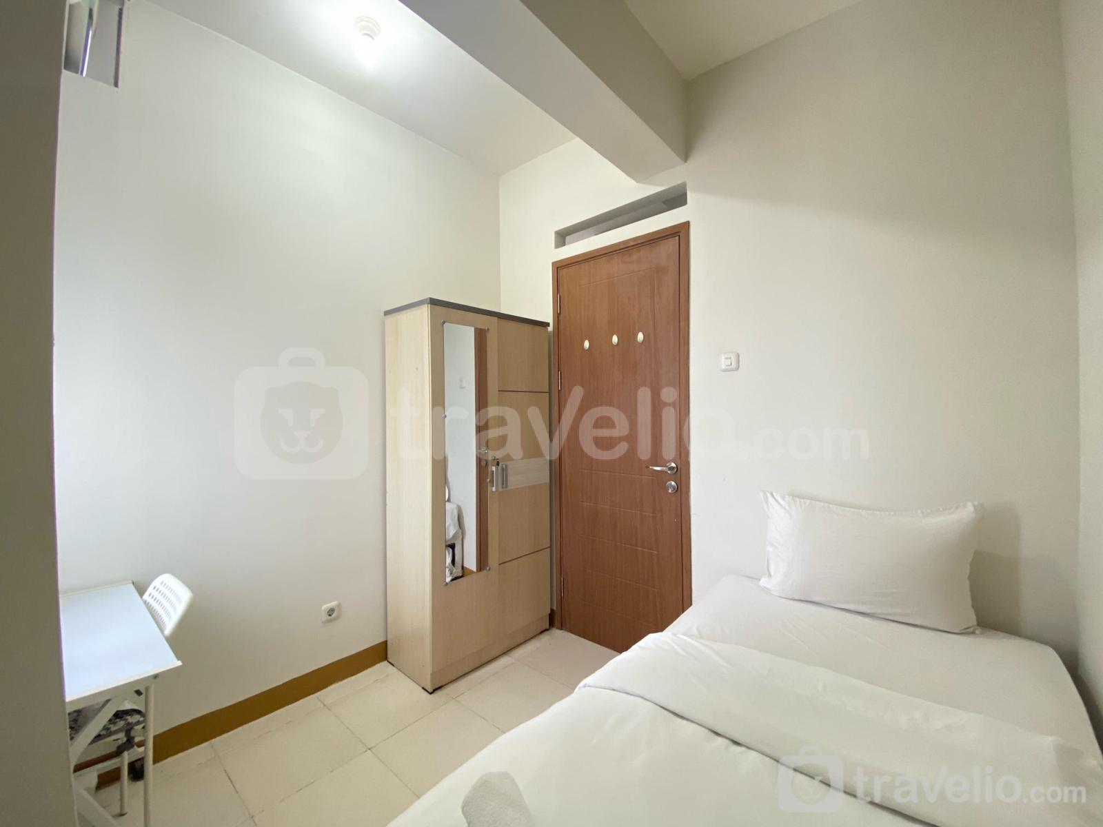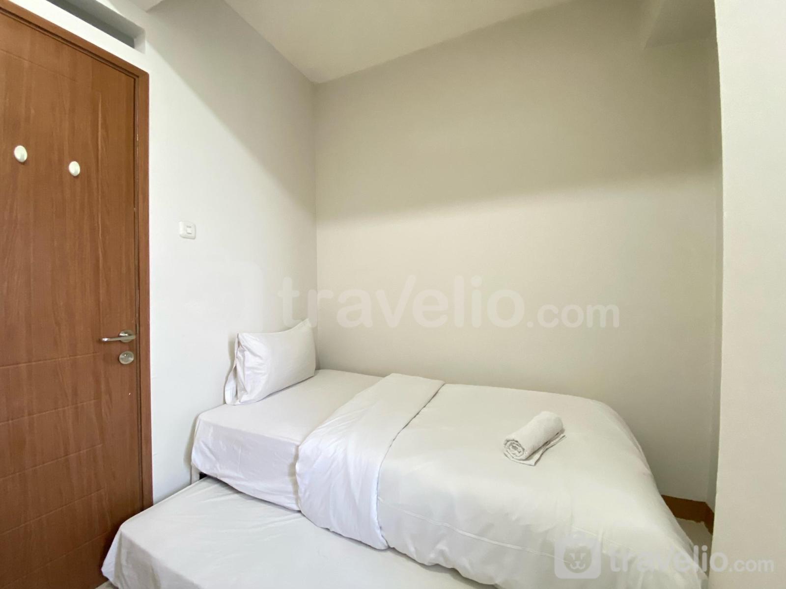 Unit apartemen ini juga dilengkapi dengan 2 kasur dengan masing-masing ukuran Queen Bed (160x200), Single Bed (100x200) berbalut linen kualitas hotel berbintang, pendingin ruangan, televisi, akses Wi-Fi gratis, perlengkapan mandi, peralatan makan dan memasak. Cozy 2BR at Pinewood Apartment Jatinangor By Travelio bisa disewa secara harian, bulanan, dan tahunan.