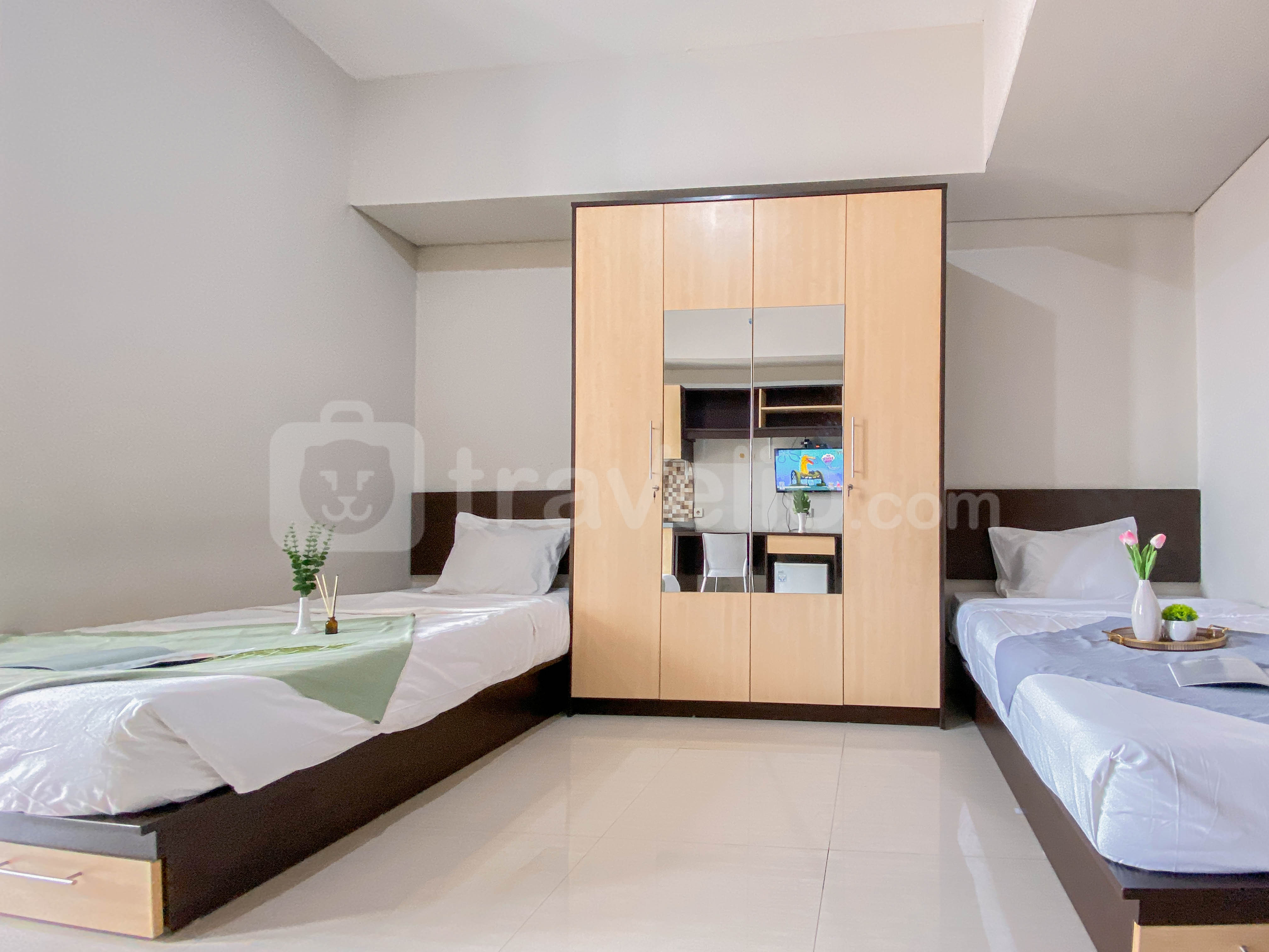 Unit apartemen yang dimiliki Travelio memiliki standar hotel berbintang untuk memastikan kenyamanan anda selama menginap di unit ini. Unit apartemen ini bertipe BR dan Setiap kamar tidur memiliki kasur dengan tipe Super Single Bed (120x200) serta dibalut dengan linen berkualitas untuk memastikan anda mendapatkan kenyamanan saat beristirahat. Selain itu, unit ini juga menyediakan fasilitas dalam ruangan seperti pemanas air untuk memudahkan anda dalam kegiatan sehari-hari. Unit apartemen di Travelio dapat disewa secara harian, bulanan, dan tahunan.