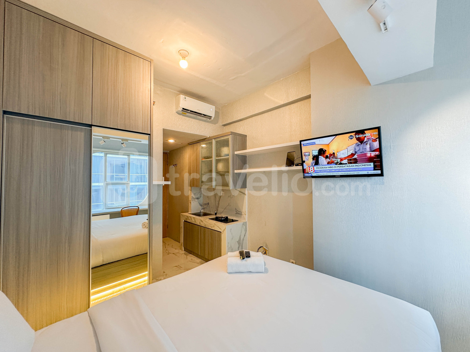 Nikmati hunian nyaman dan bergaya di Elegant Design Studio di Apartemen The City Square Surabaya, berlokasi di Jl. Margorejo Indah No.105, Sidosermo, Wonocolo, Surabaya, Jawa Timur, 60238. Dengan tata letak yang ringkas namun fungsional seluas 21 meter persegi, unit studio ini memiliki 1 kamar mandi dan dilengkapi dengan fasilitas utama seperti TV, lemari es, dan water heater. Kompleks apartemen ini juga menawarkan berbagai fasilitas unggulan, termasuk keamanan 24 jam, CCTV di area publik, kafe, lift, pusat kebugaran, layanan laundry (berbayar), lounge, dan kolam renang.