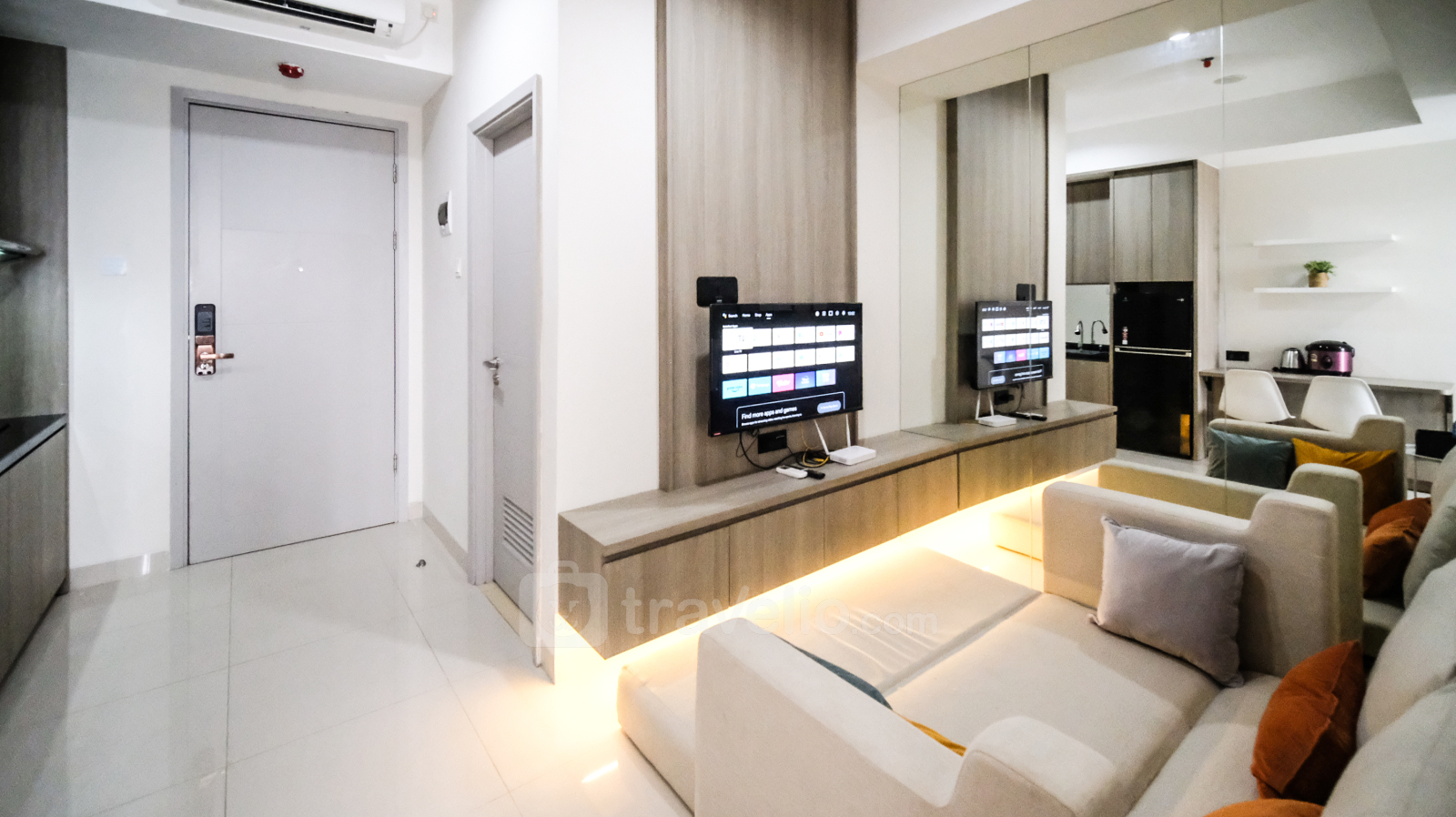 Perkenalkan, Good Choice and Homey 1BR Grand Sungkono Lagoon Apartment By Travelio. Apartemen ini menawarkan ruang hunian yang nyaman dengan satu kamar tidur dan satu kamar mandi, dengan luas 38,35 meter persegi. Terletak di area Dukuh Pakis Surabaya, penghuni dapat menikmati gaya hidup yang nyaman dengan akses mudah ke berbagai fasilitas di dalam Apartemen Grand Sungkono Lagoon. Fasilitas unit mencakup televisi, kulkas, dan pemanas air, memastikan kenyamanan bagi penghuni. Selain itu, gedung menyediakan fasilitas seperti keamanan 24 jam, kartu akses, pengawasan CCTV di area publik, lift, dan kolam renang, meningkatkan keamanan dan kenyamanan penghuni.