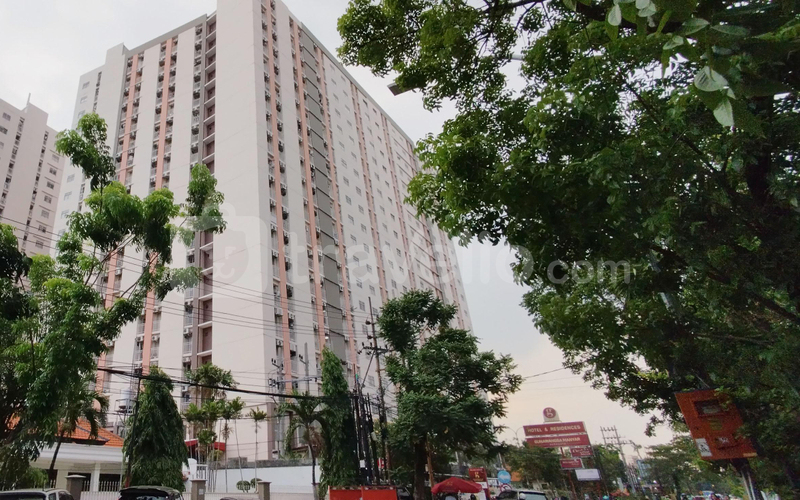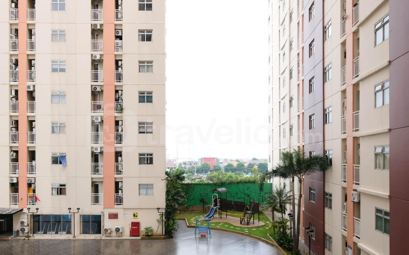 Fasilitas gedung meliputi keamanan 24 jam, kafe, lift, area bermain anak, dan kolam renang yang nyaman untuk bersantai bersama keluarga.