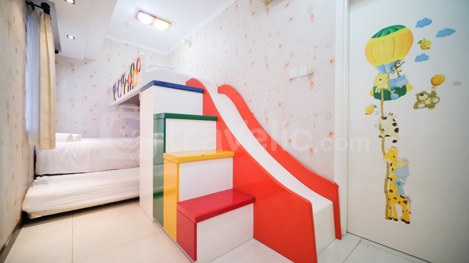 Unit dengan 2 kamar tidur ini di desain senyaman mungkin dan ramah untuk anak yang dapat memberikan pengalaman menginap menyenangkan dan terasa seperti menginap di rumah sendiri. Kelengkapan unit yang tersedia dapat mempermudah anda untuk melakukan aktivitas sehari - hari.