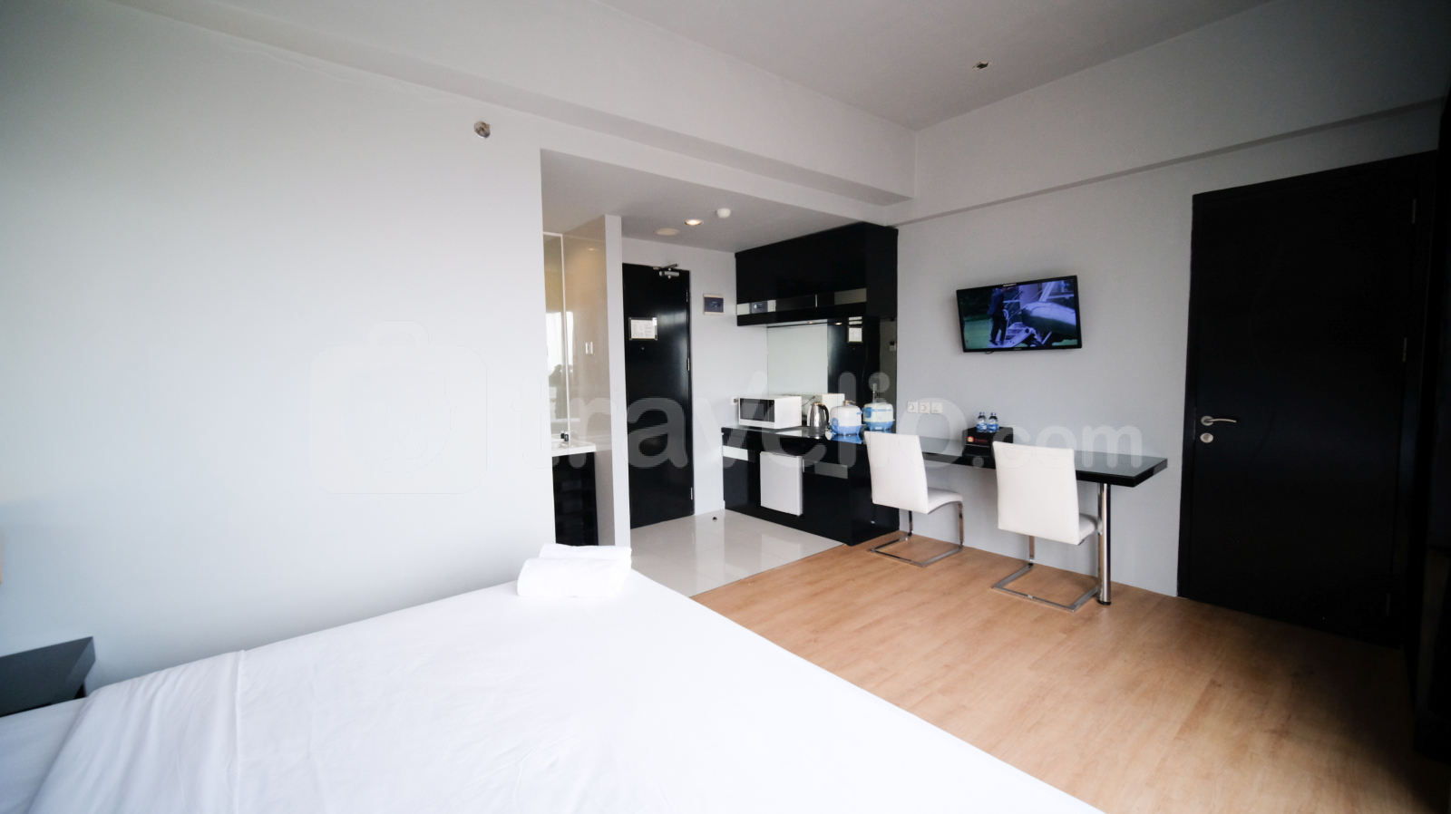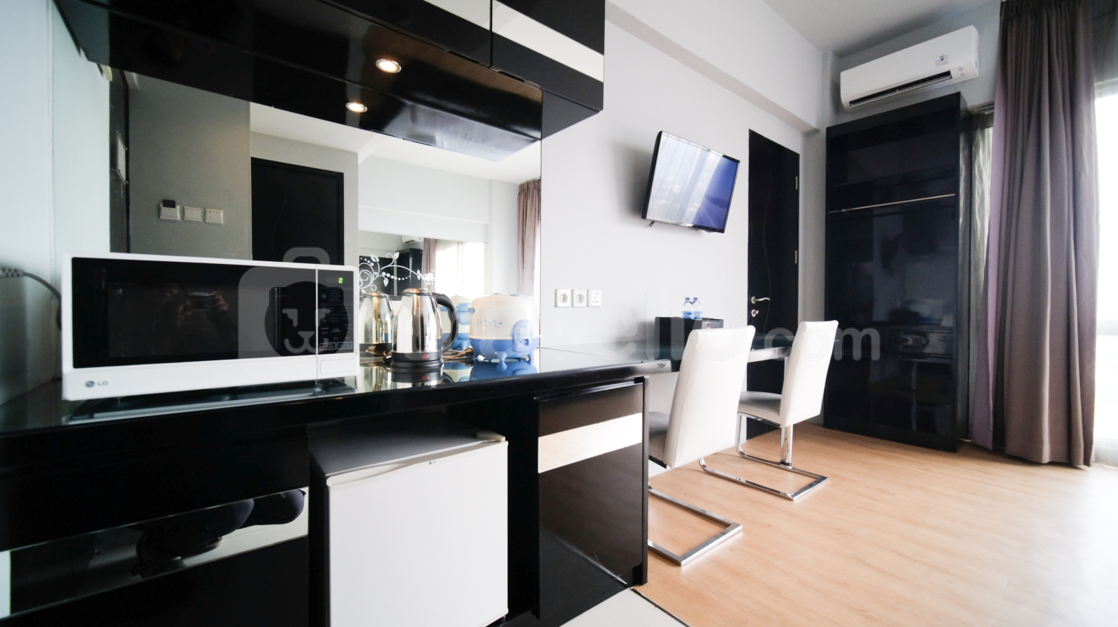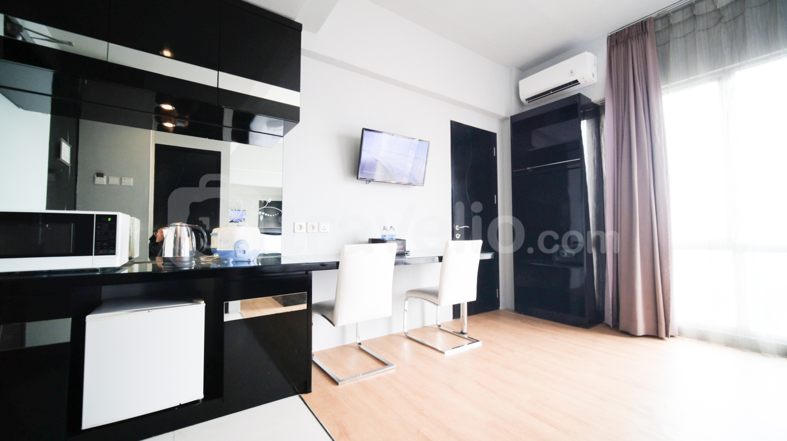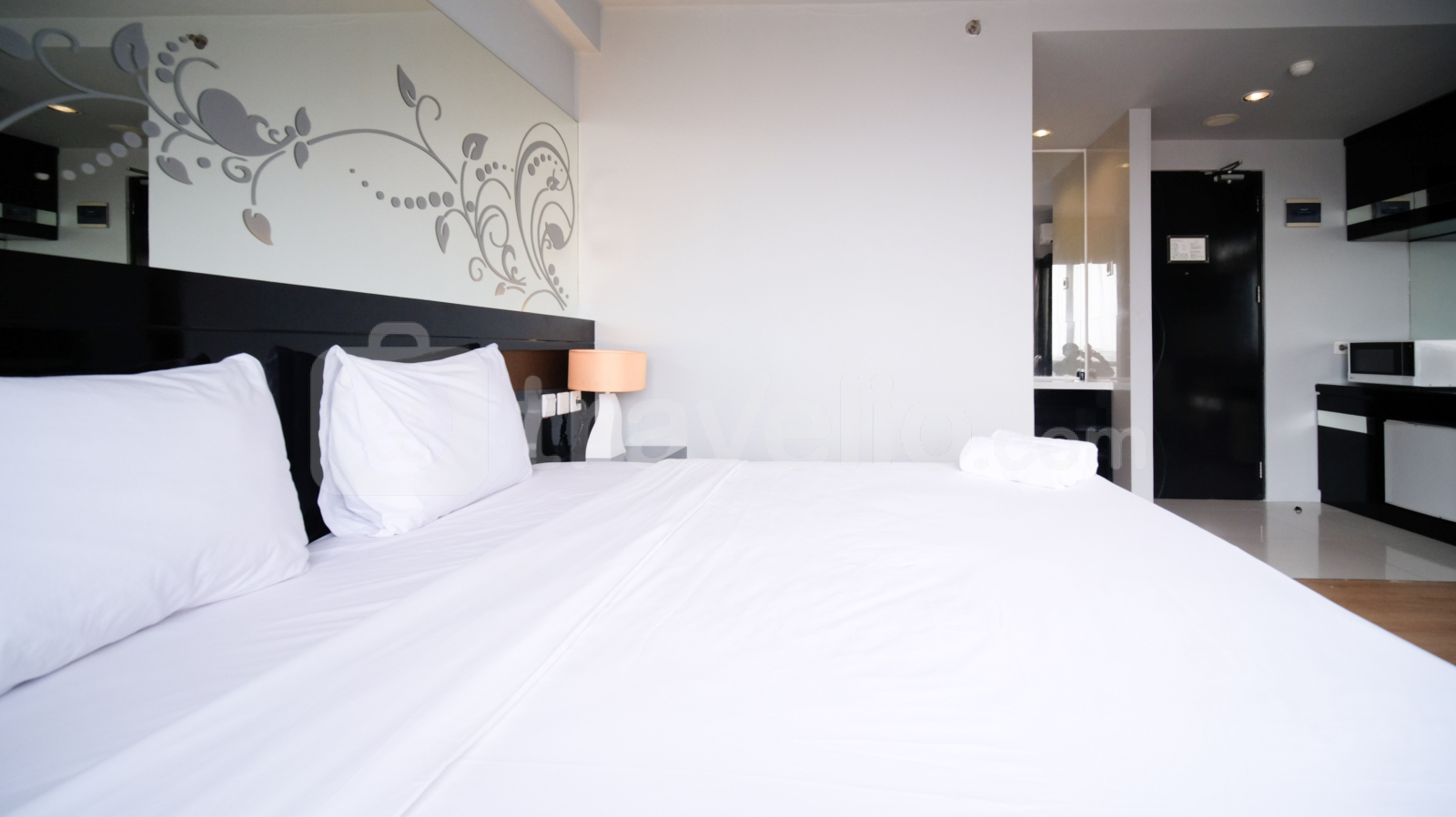Perkenalkan Homey Studio No Kitchen at Grand Darmo Suite Apartment By Travelio. Cocok untuk individu atau pasangan yang mencari ruang tinggal modern dan nyaman, unit ini menawarkan kenyamanan dan fungsionalitas dengan fasilitas yang lengkap.