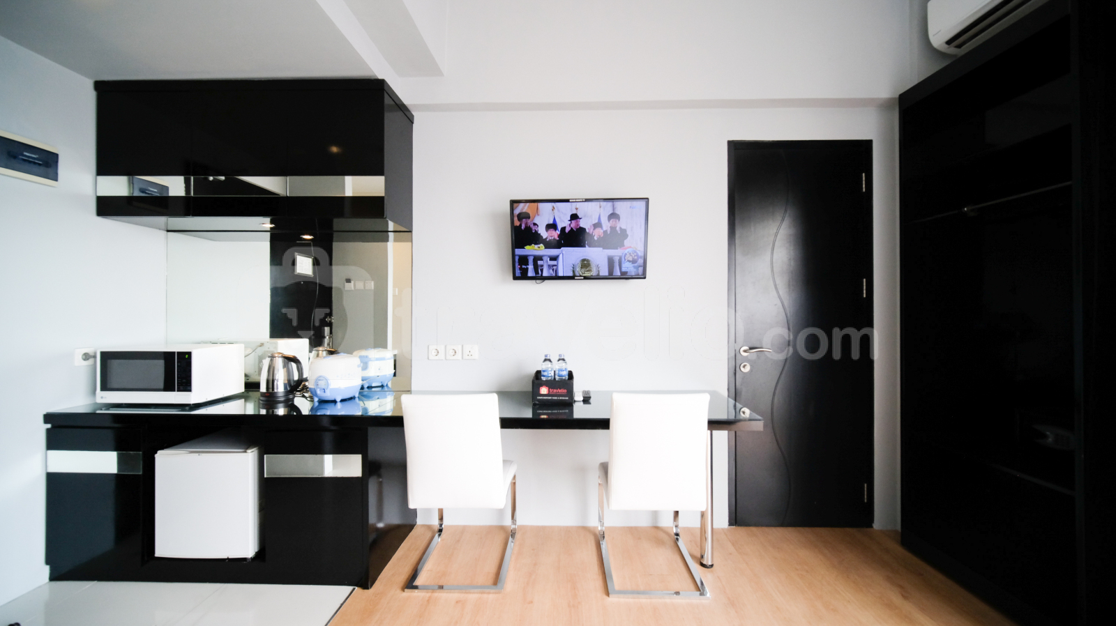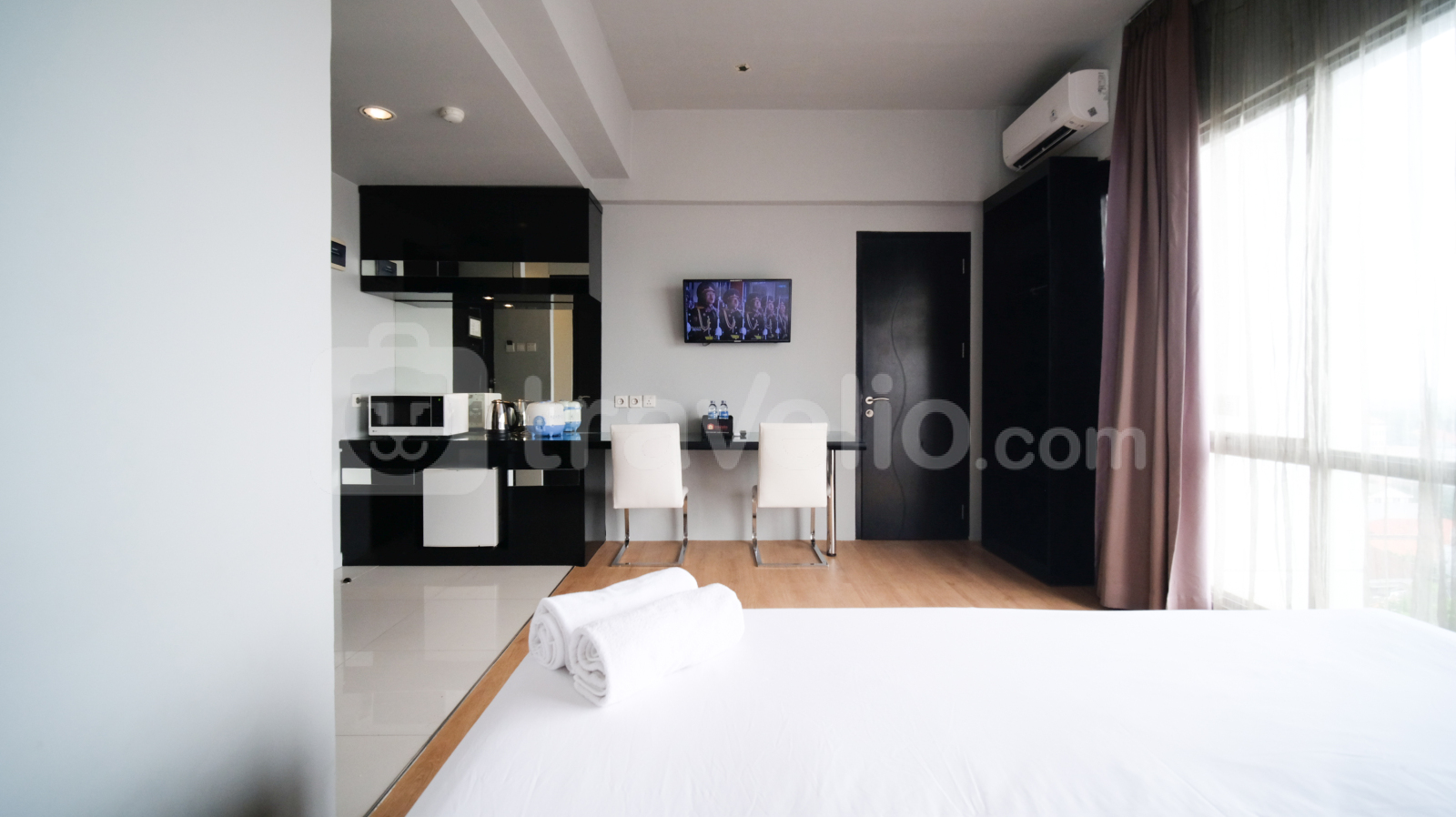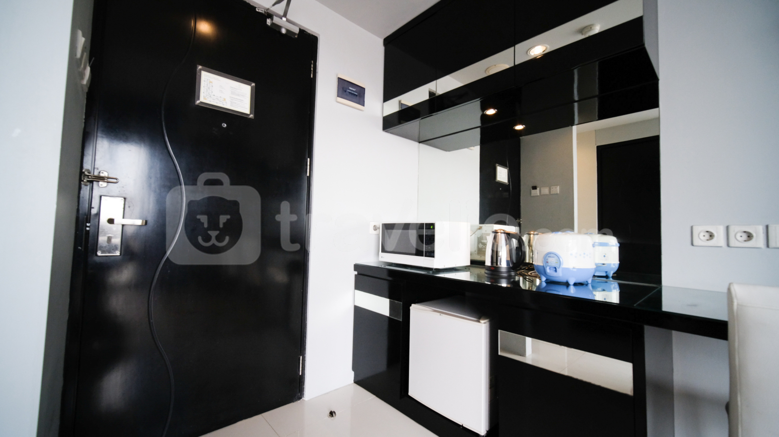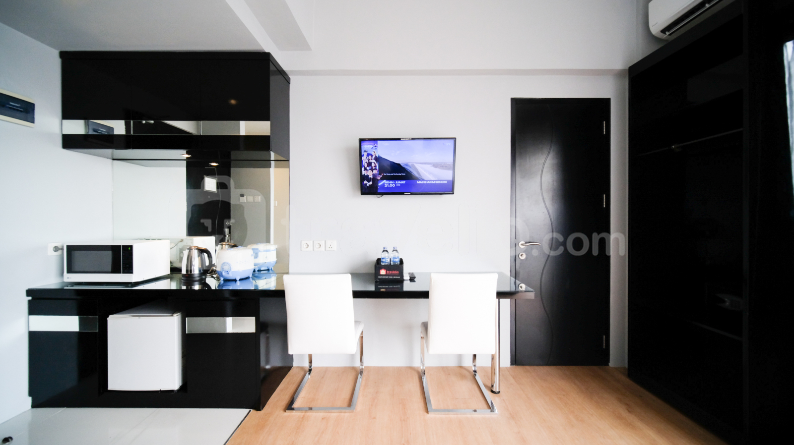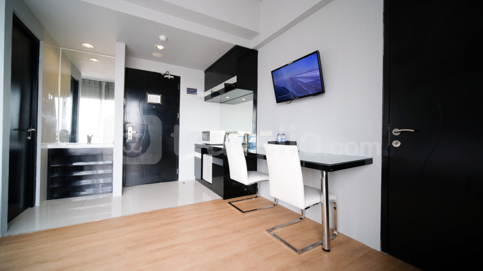 Perkenalkan Homey Studio No Kitchen at Grand Darmo Suite Apartment By Travelio. Cocok untuk individu atau pasangan yang mencari ruang tinggal modern dan nyaman, unit ini menawarkan kenyamanan dan fungsionalitas dengan fasilitas yang lengkap.