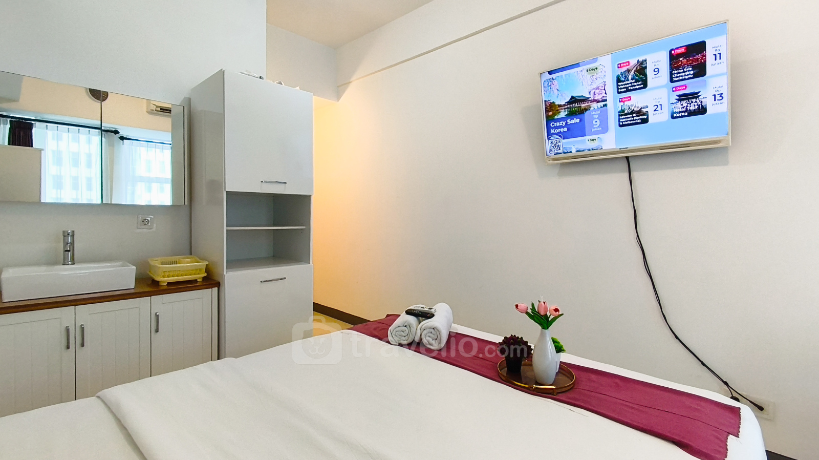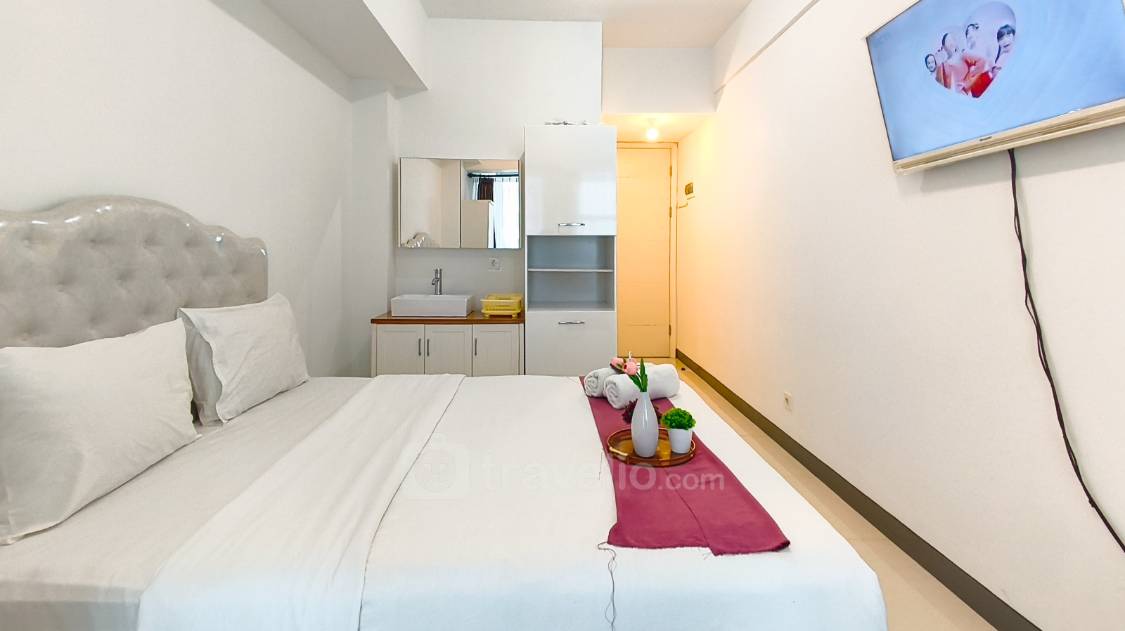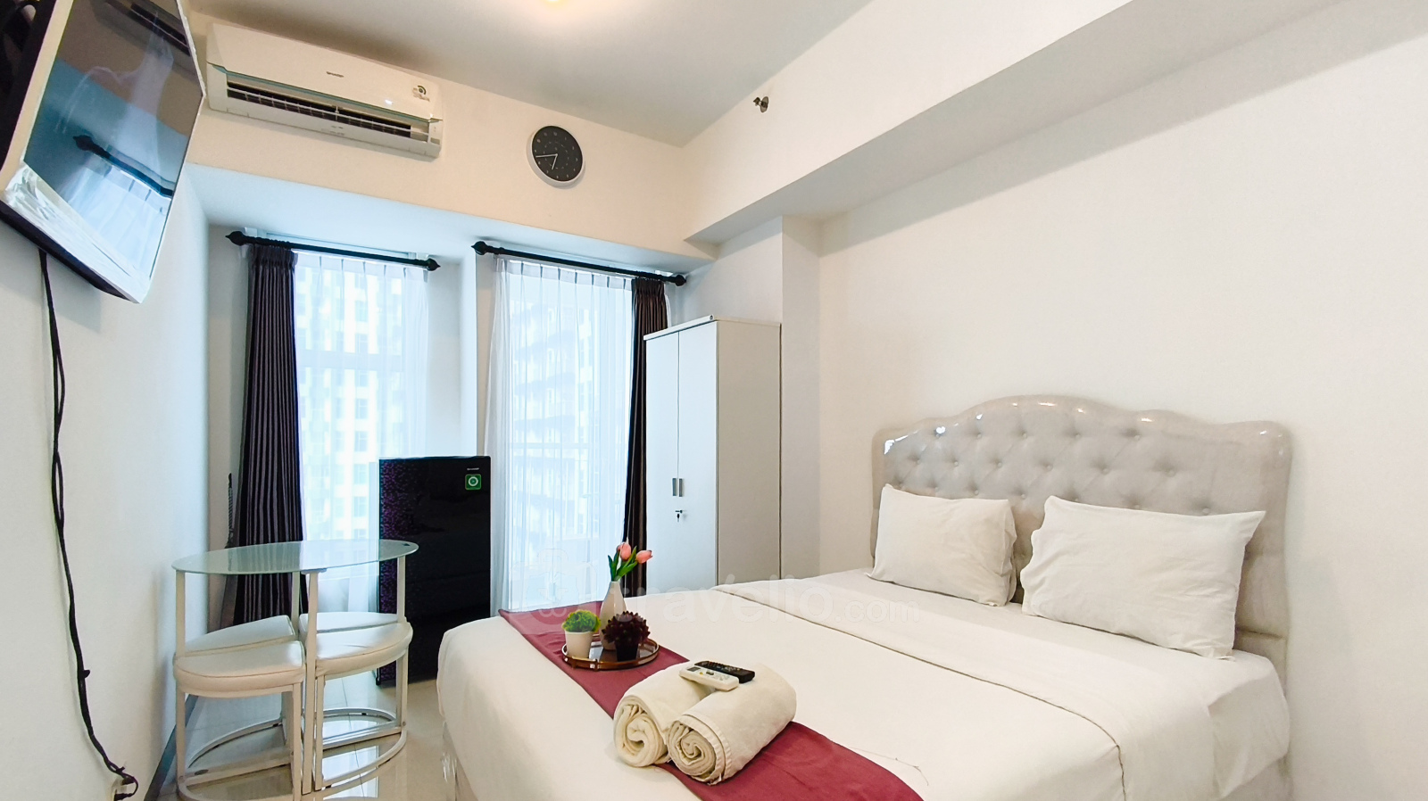 Nikmati pengalaman tinggal di studio yang dirancang dengan baik dan menenangkan di unit ini. Unit studio ini memiliki 1 kamar tidur tipe studio, 1 kamar mandi, dan luas 26 sqm, sehingga sangat cocok bagi profesional, pasangan, maupun wisatawan yang mengutamakan kenyamanan, fungsionalitas, serta tata ruang yang rapi di kawasan Surabaya Barat. Unit ini dilengkapi dengan TV, kulkas, pemanas air, kabinet dapur, dan gunting dapur, yang menunjang kebutuhan aktivitas harian serta memberikan kenyamanan untuk masa tinggal jangka pendek hingga menengah. Berlokasi di area Babatan, properti ini merupakan bagian dari Apartemen Benson Supermall Mansion yang terletak di Jl. Pakuwon Indah No.7, Lontar, Sambikerep, Surabaya, Jawa Timur, 60213. Babatan dikenal sebagai kawasan hunian dan gaya hidup premium di Surabaya Barat, dengan akses yang sangat dekat ke pusat komersial utama, pusat perbelanjaan kelas atas, serta fasilitas perkotaan modern, namun tetap menawarkan lingkungan yang tenang dan nyaman.