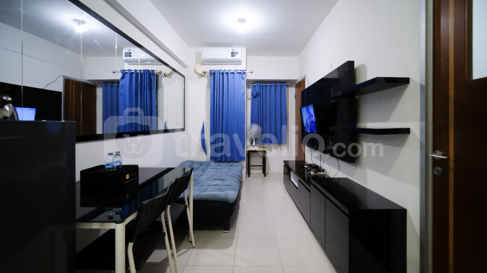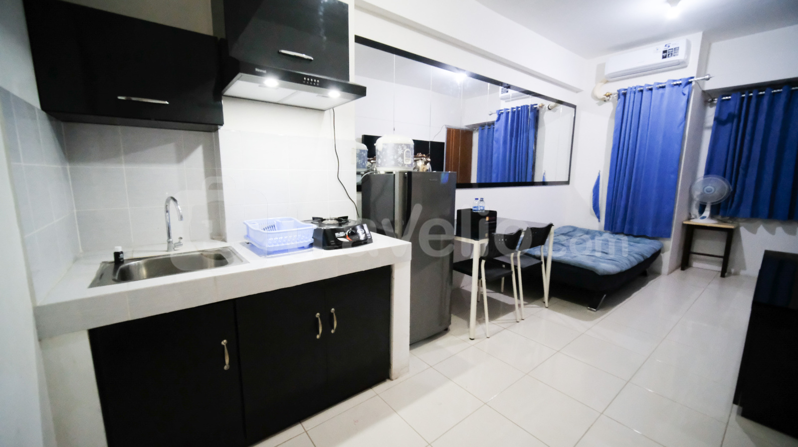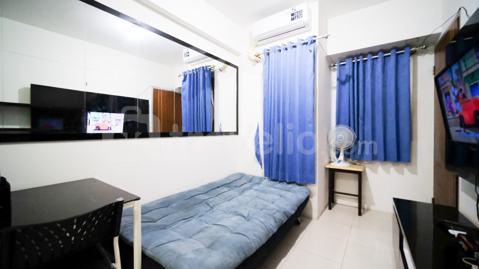 Unit ini dilengkapi dengan kasur dengan masing-masing ukuran Queen Bed (160x200) dan Single Bed (100x200) berbalut linen kualitas hotel berbintang, pendingin ruangan, televisi, perlengkapan mandi, peralatan makan dan memasak. Strategic and Comfy 2BR at Puncak Kertajaya Apartment By Travelio bisa disewa secara bulanan, dan tahunan.