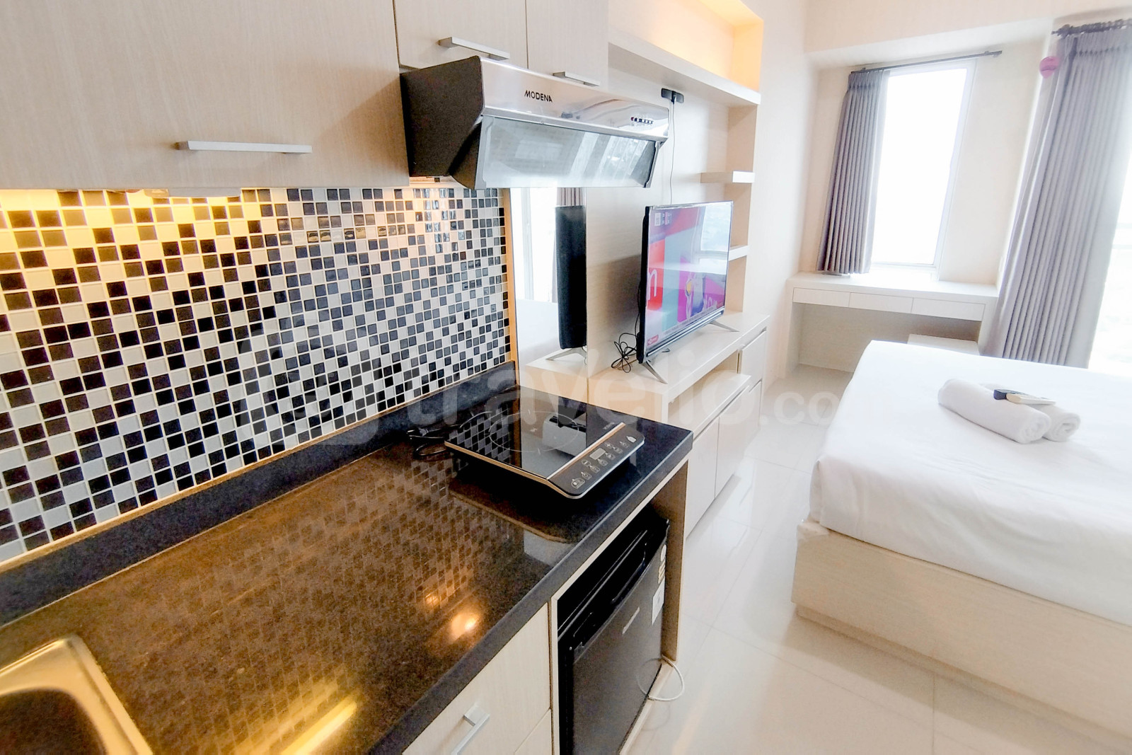 Unit ini dilengkapi dengan TV, kulkas, dan water heater, ideal untuk mahasiswa, profesional muda, atau pasangan yang mencari tempat tinggal praktis di pusat gaya hidup modern.