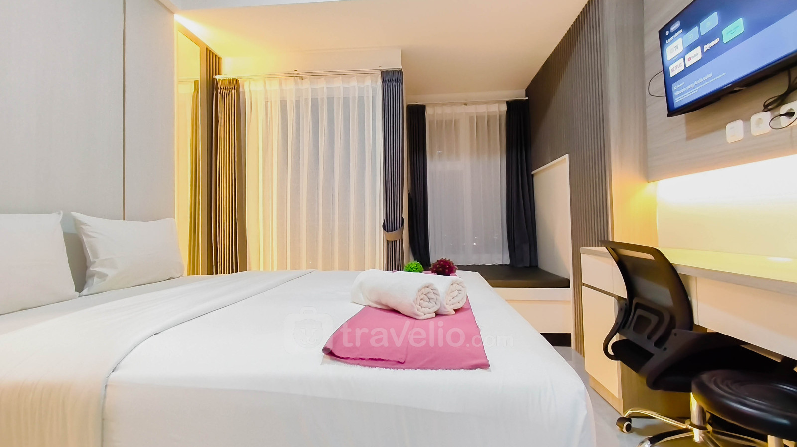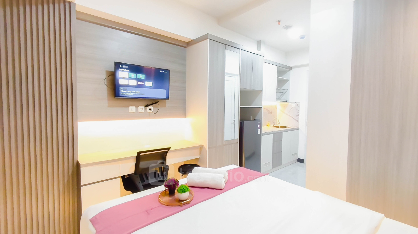 Nikmati hunian yang stylish dan fungsional dengan sentuhan modern di unit ini. Unit studio ini memiliki 1 kamar tidur dan 1 kamar mandi dengan luas 24,37 m², menjadikannya pilihan sempurna bagi para profesional, pasangan, atau pelancong yang mencari hunian nyaman dan praktis di Surabaya. Unit ini dilengkapi dengan TV, kulkas, pemanas air, lemari dapur, dan gunting dapur, memastikan kenyamanan untuk kegiatan sehari-hari maupun tinggal jangka pendek hingga menengah. Terletak di area Babatan, properti ini merupakan bagian dari Apartemen Westown View Surabaya, beralamat di Jl. Raya Menganti Jl. Dukuh Karangan Tengah No.73, Babatan, Kec. Wiyung, Surabaya, 60227. Babatan merupakan area residensial dan komersial yang berkembang di Surabaya Barat, menawarkan akses mudah ke jalan utama, pusat perbelanjaan, destinasi kuliner, dan fasilitas gaya hidup, sambil tetap menghadirkan lingkungan hunian perkotaan yang nyaman.