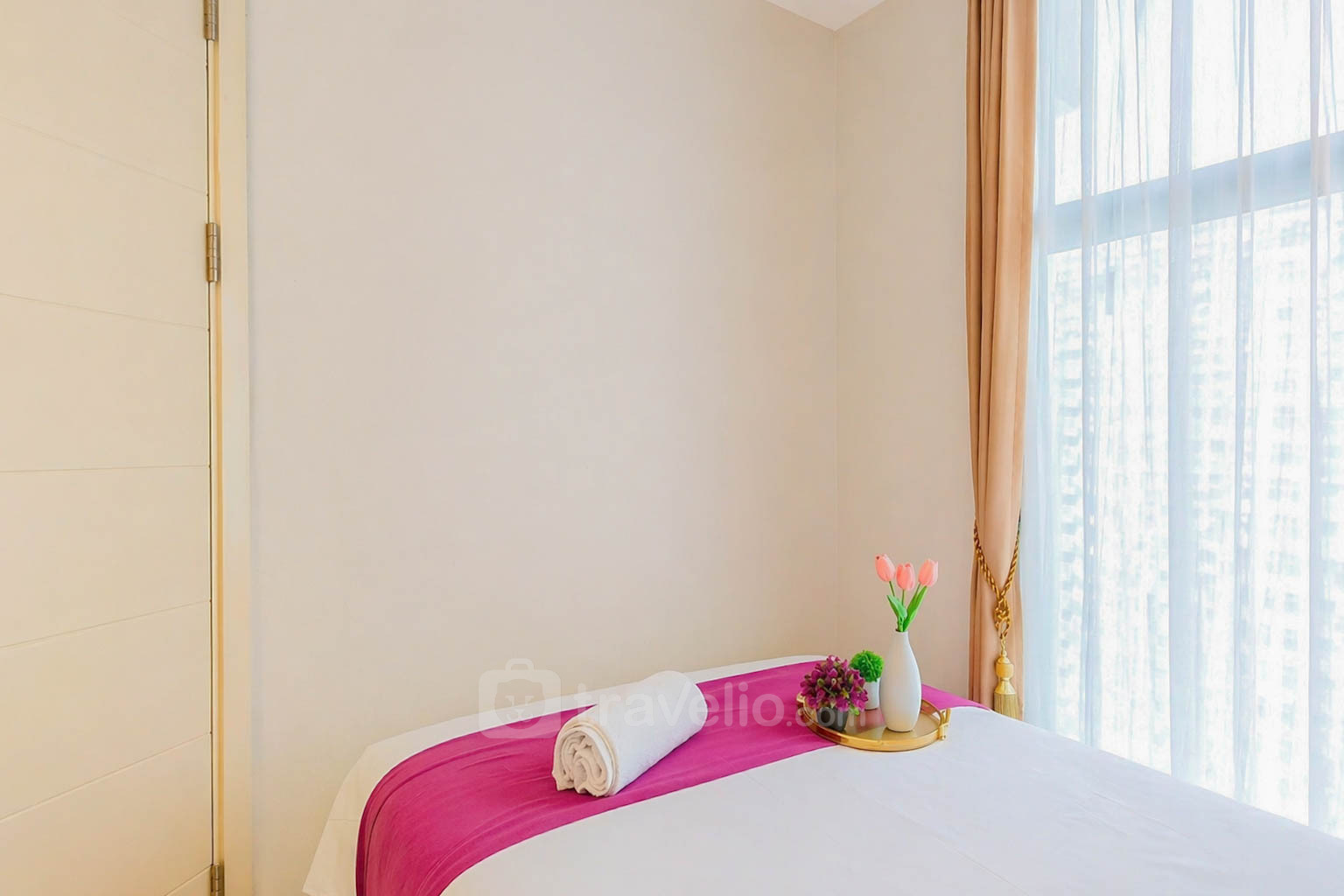 Nikmati hunian tenang dan nyaman di unit 2 kamar tidur seluas 54 m², cocok untuk keluarga kecil maupun rombongan. Unit ini dilengkapi dengan tempat tidur king bed di kamar utama dan super single bed di kamar kedua, nyaman untuk dihuni hingga 3 orang. Tersedia juga water heater untuk menunjang kenyamanan Anda sehari-hari.