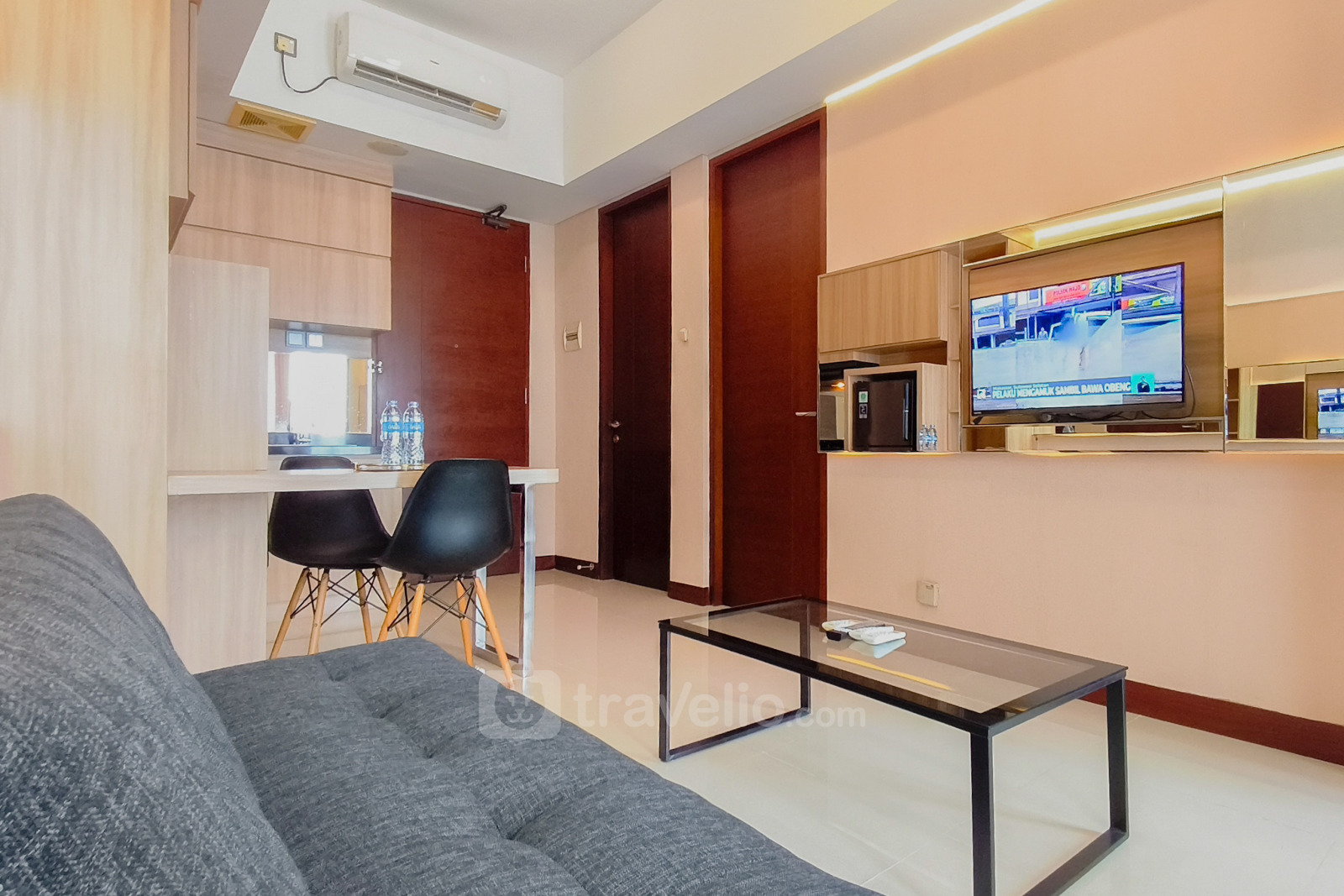 Nikmati hunian 2 kamar tidur seluas 47 m² yang tenang dan nyaman untuk dihuni hingga 3 orang. Dilengkapi dengan tempat tidur queen di kamar utama dan tempat tidur super single di kamar kedua, unit ini cocok untuk keluarga kecil maupun rombongan. Tersedia AC di setiap ruangan, water heater di kamar mandi, serta sofa bed di ruang tamu untuk menunjang kenyamanan selama menginap. Berlokasi di kawasan Ngagel, Surabaya, apartemen ini memiliki akses langsung ke Marvel City Mall serta kemudahan menuju berbagai destinasi penting.