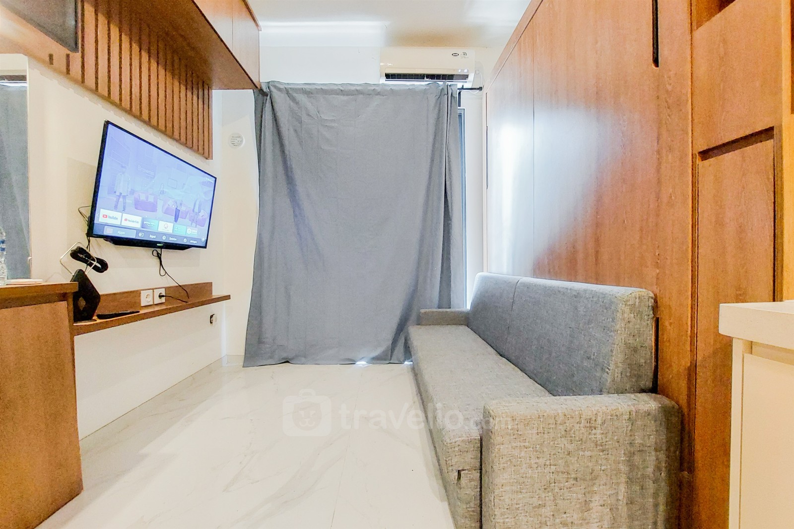 Perkenalkan puncak kehidupan modern: sebuah apartemen studio di lokasi utama Sky House BSD Apartment, disajikan oleh Travelio. Studio yang elegan dan kontemporer ini menawarkan kenyamanan dan gaya di pusat BSD City. Dengan satu kamar tidur studio dan satu kamar mandi dalam ruang kompak sebesar 20,49 meter persegi, apartemen ini ideal untuk individu atau pasangan yang mencari ruang hidup modern dan fungsional. Unit dilengkapi dengan fasilitas penting termasuk TV, kulkas, dan pemanas air, memastikan pengalaman menginap yang nyaman bagi penghuninya.