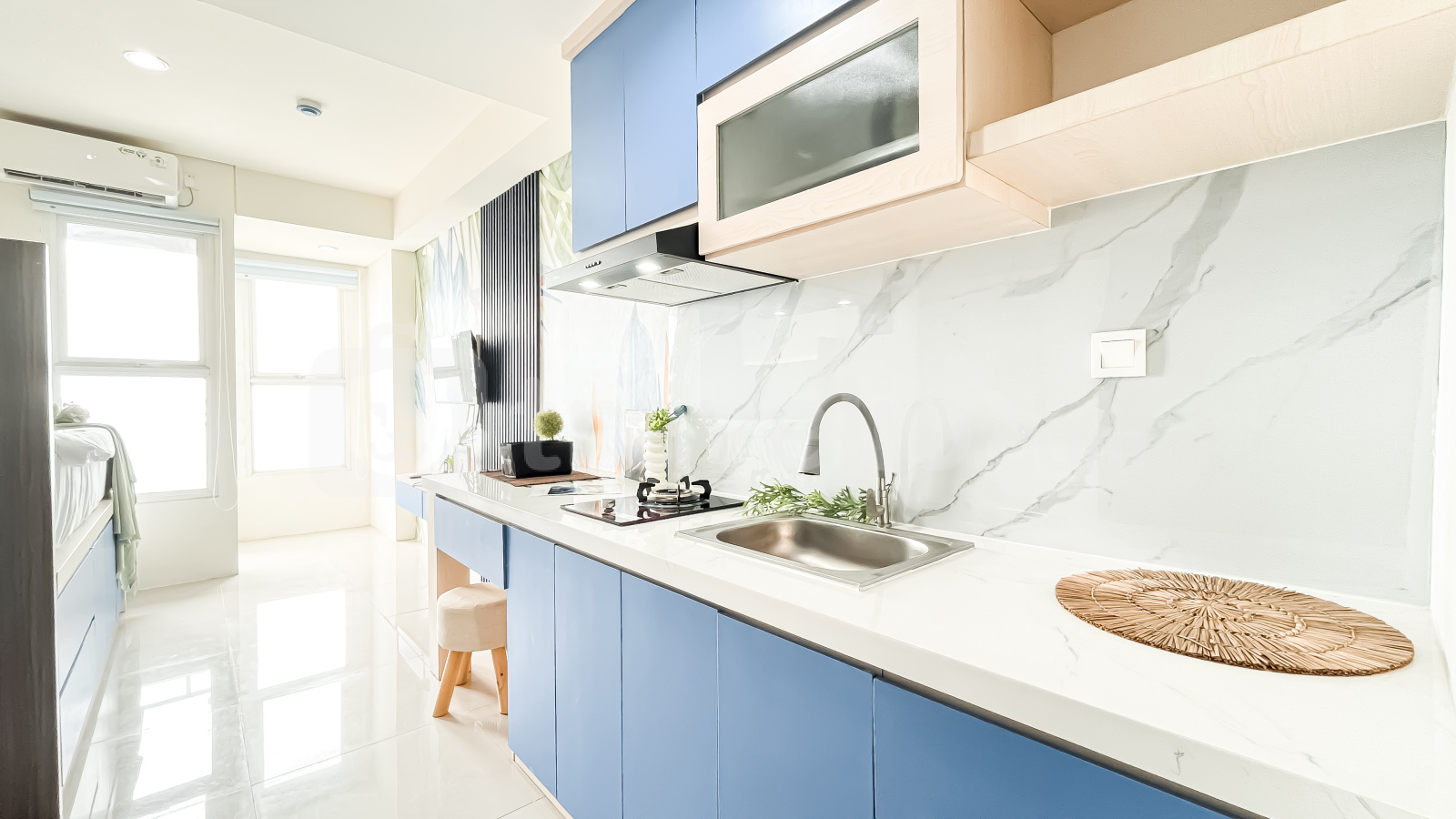 Temukan hunian urban yang stylish dan nyaman dengan Studio berukuran 21,9 sqm di Apartemen Samesta Mahata Serpong. Berlokasi strategis di Jl. Raya Rawa Buntu, Serpong, Tangerang Selatan, unit ini sangat cocok untuk para profesional muda, mahasiswa, atau investor yang mencari kenyamanan dan gaya hidup modern. Desain aksen biru menghadirkan suasana yang segar, sementara tata ruang yang fungsional memaksimalkan ruang dan kenyamanan. Unit ini dilengkapi dengan fasilitas esensial seperti TV, lemari es, dan pemanas air, sehingga siap digunakan tanpa repot. Penghuni juga dapat menikmati fasilitas gedung seperti keamanan 24 jam, CCTV di area publik, dan lift yang memberikan rasa aman dan kemudahan akses.