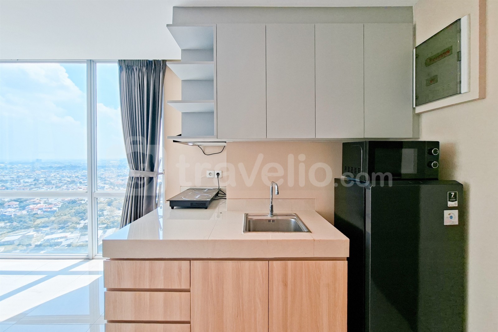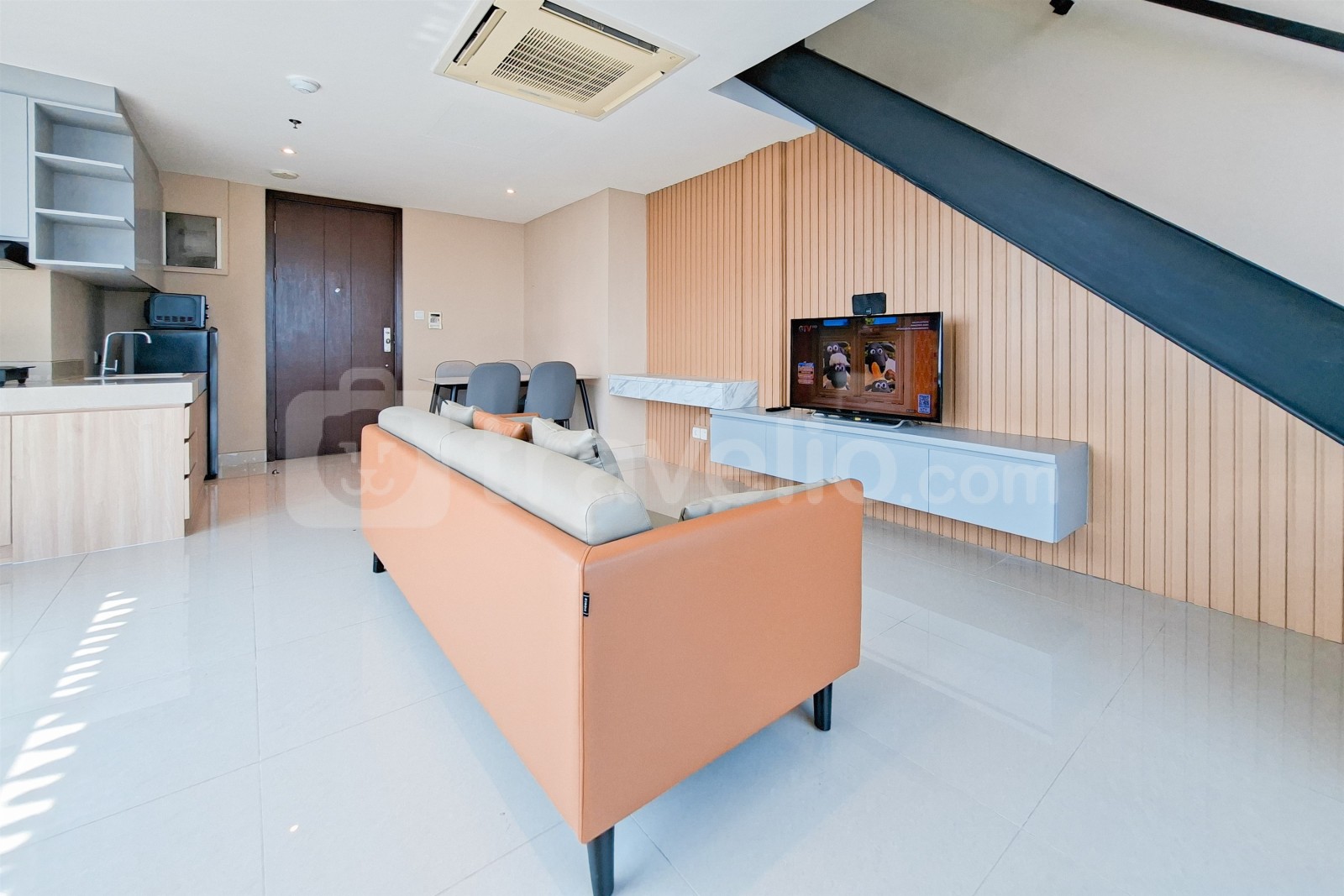 Unit Studio Loft seluas 60,92 sqm di Bizloft U Residence, Lippo Karawaci. Unit modern ini dilengkapi dengan TV, Kulkas, dan Microwave, memberikan kenyamanan sekaligus gaya untuk hunian sehari-hari.