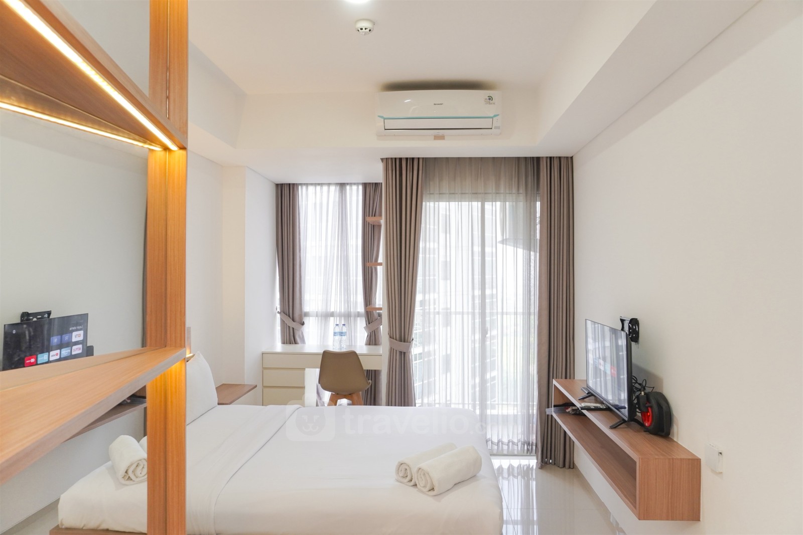 Menawarkan tinggal yang nyaman dan studio yang menyenangkan, Apartemen Pacific Garden Alam Sutera oleh Travelio adalah pilihan sempurna untuk gaya hidup urban yang santai. Studio ini memiliki satu kamar tidur, satu kamar mandi, dan luas sekitar 26.05 meter persegi, menciptakan ruang yang nyaman untuk tinggal. Dilengkapi dengan fasilitas dasar seperti TV dan kulkas, apartemen ini menawarkan kenyamanan sehari-hari bagi penghuninya. Selain itu, fasilitas gedung mencakup pusat kebugaran untuk tetap aktif dan kolam renang untuk bersantai dan menyegarkan diri setelah seharian beraktivitas.