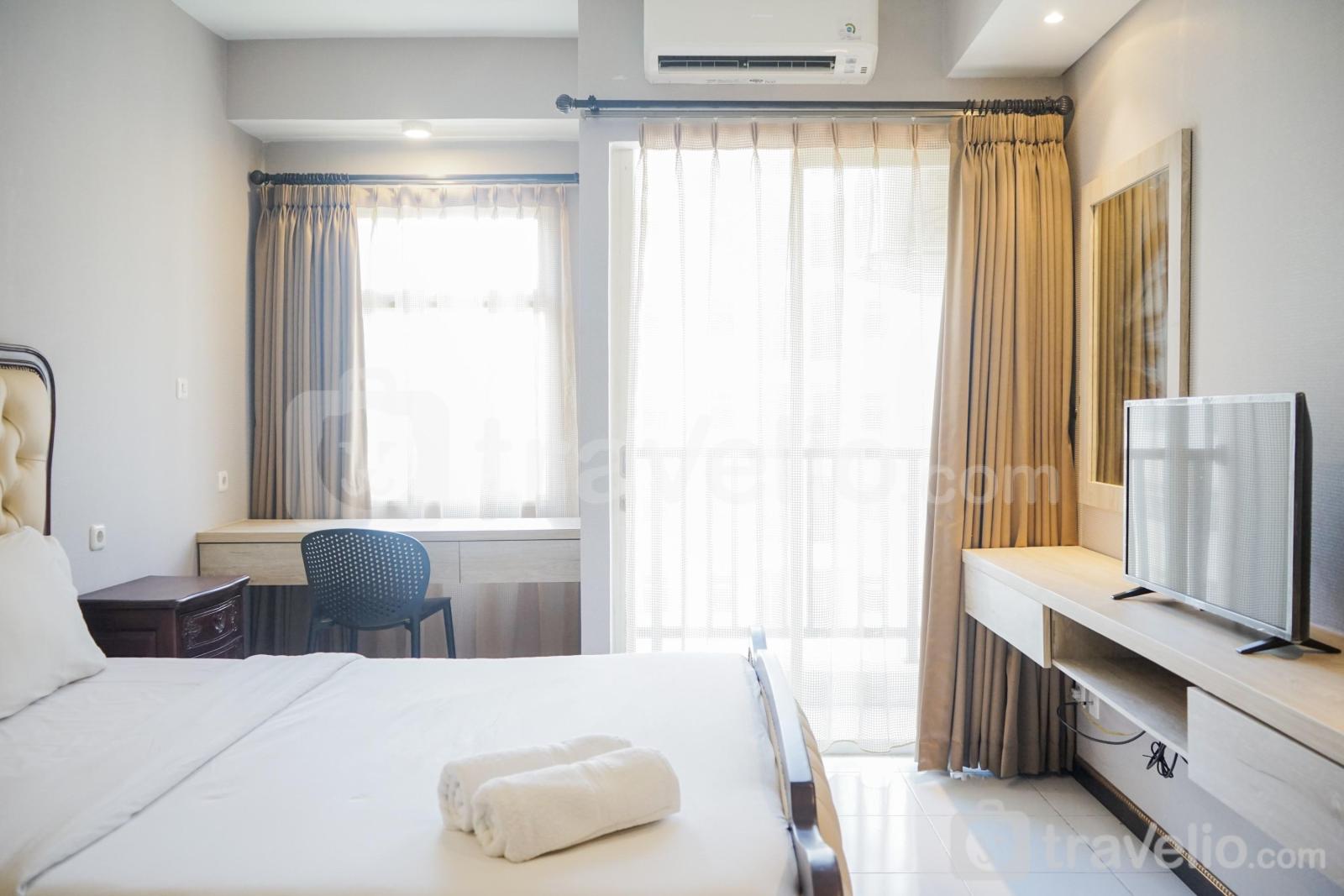 Unit apartemen seluas 23.8 sqm ini juga dilengkapi dengan 1 kasur ukuran Queen (160x200) berbalut linen kualitas hotel berbintang, pendingin ruangan, televisi, akses Wi-Fi gratis, perlengkapan mandi, peralatan makan dan memasak. Cozy Living Studio Apartment at Ayodhya Residence Tangerang By Travelio bisa disewa secara harian, bulanan, dan tahunan. Terdapat balkon dengan pemandangan.