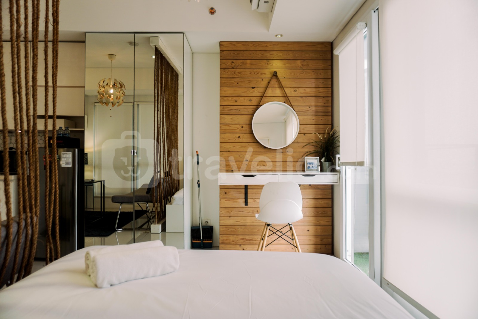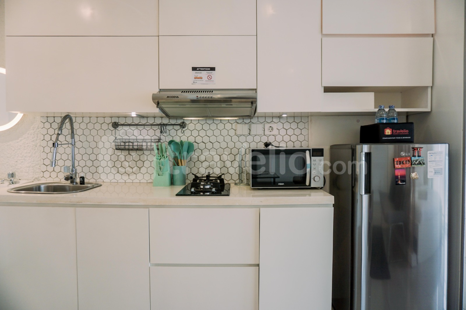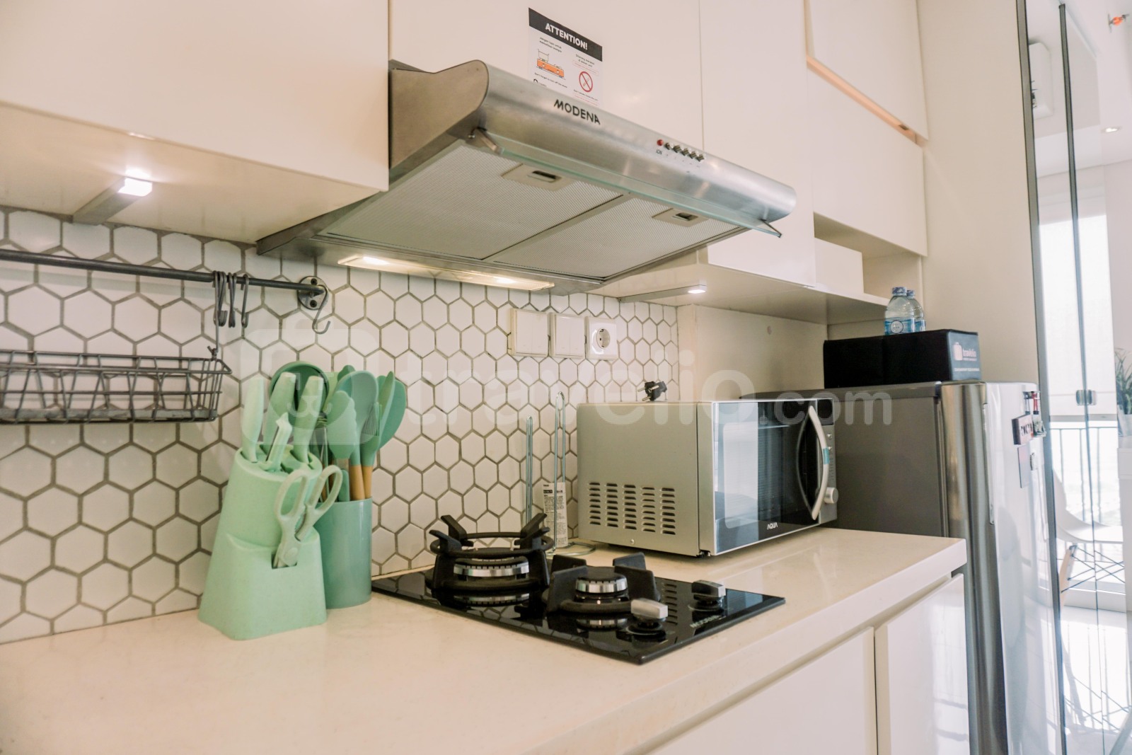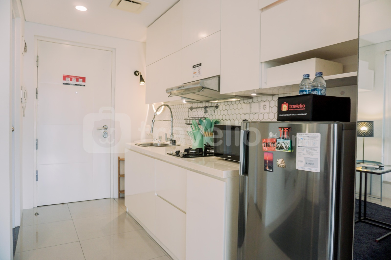 Apartemen studio dirancang dengan cermat untuk memenuhi kebutuhan Anda. Dilengkapi dengan fasilitas seperti TV, kulkas, microwave, pemanas air, lemari dapur, kain dapur, dan gunting dapur, memastikan Anda memiliki semua perlengkapan penting untuk masa menginap yang nyaman dan menyenangkan.