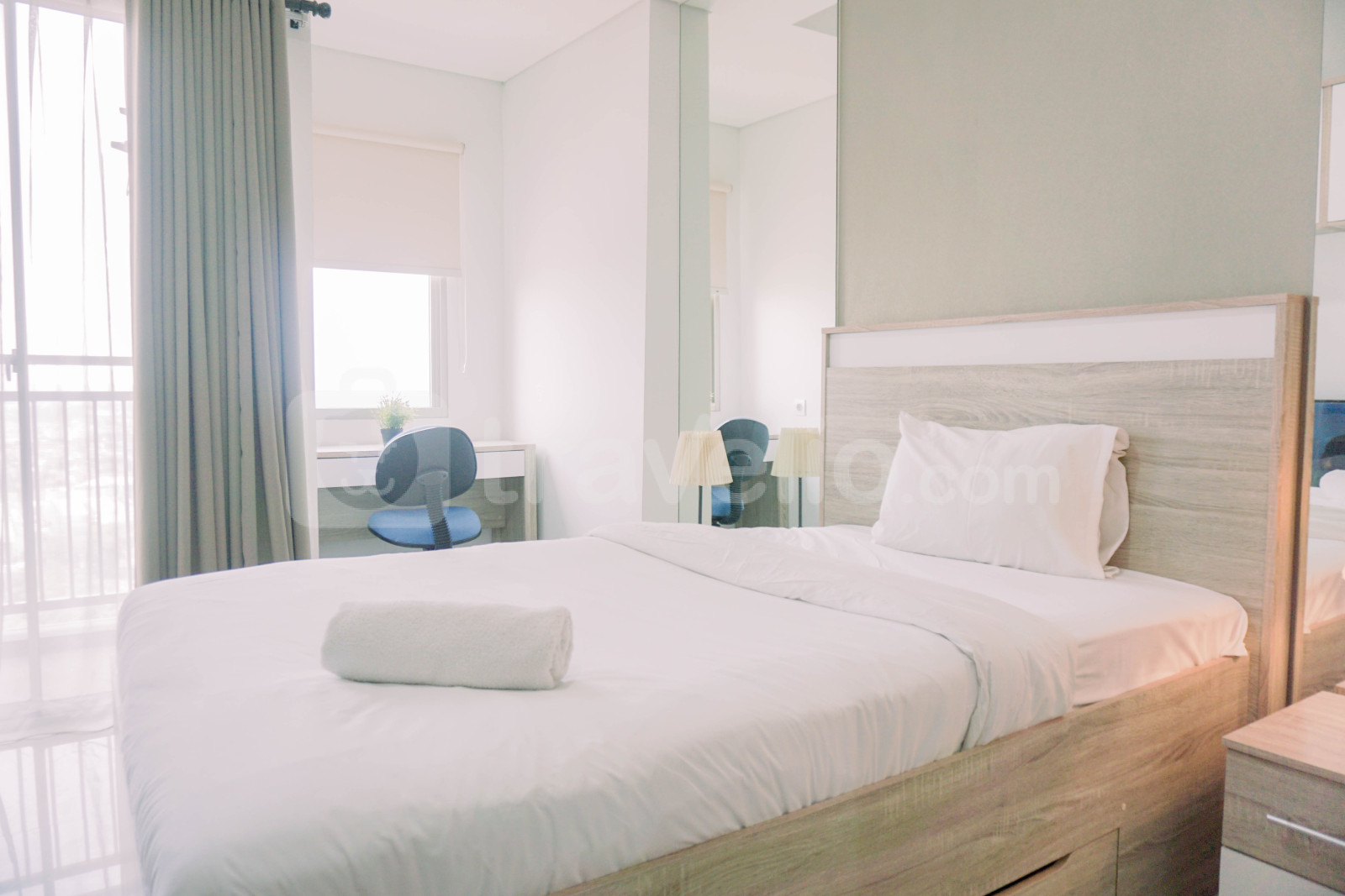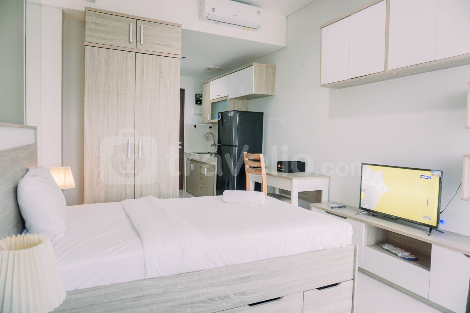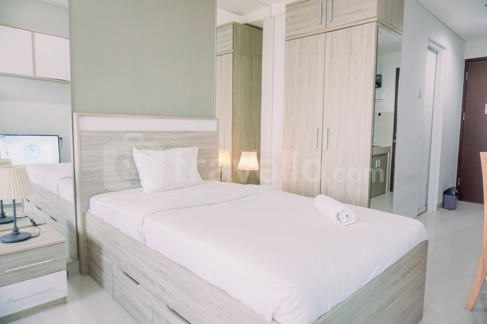 Perkenalkan Homey and Cozy Studio at Springwood Residence Tangerang Apartment By Travelio. Studio ini didesain dengan baik, memiliki 1 kamar mandi, dan mencakup luas 26,25 meter persegi, memberikan ruang hidup yang nyaman di tengah kota Tangerang.