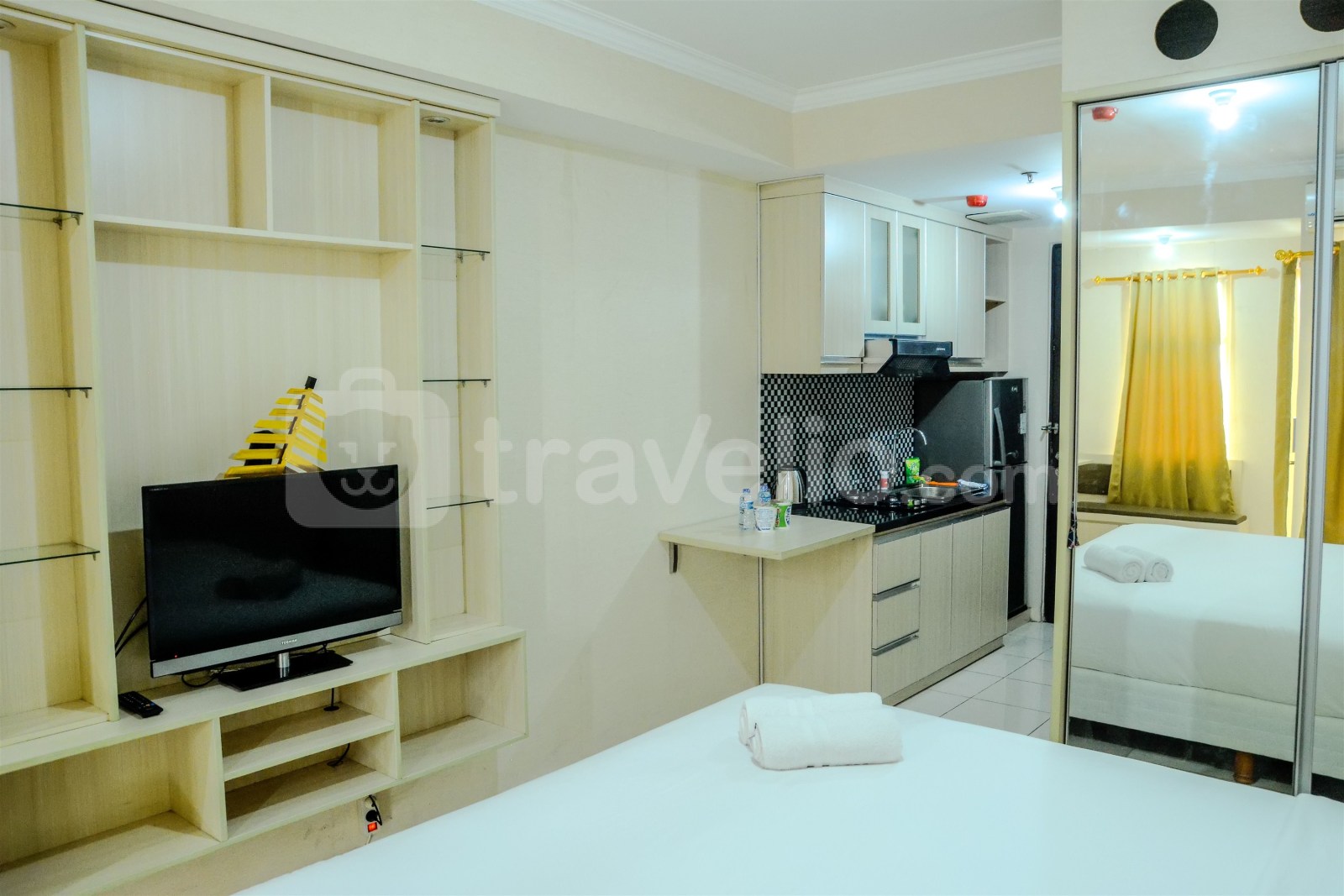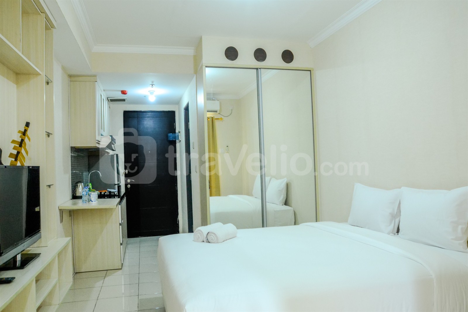Minimalist Studio Room at Grand Serpong Apartment By Travelio dapat disewa secara harian, mingguan, dan bulanan.