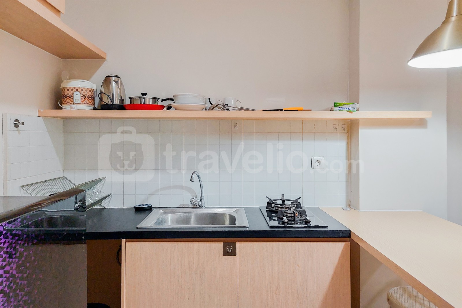Dengan 1 kamar tidur dan 1 kamar mandi dalam luas 31,69 meter persegi, apartemen ini memiliki desain yang ramping dan stylish. Unit dilengkapi dengan fasilitas penting termasuk TV, kulkas, dan pemanas air, memastikan kenyamanan dan fungsionalitas.