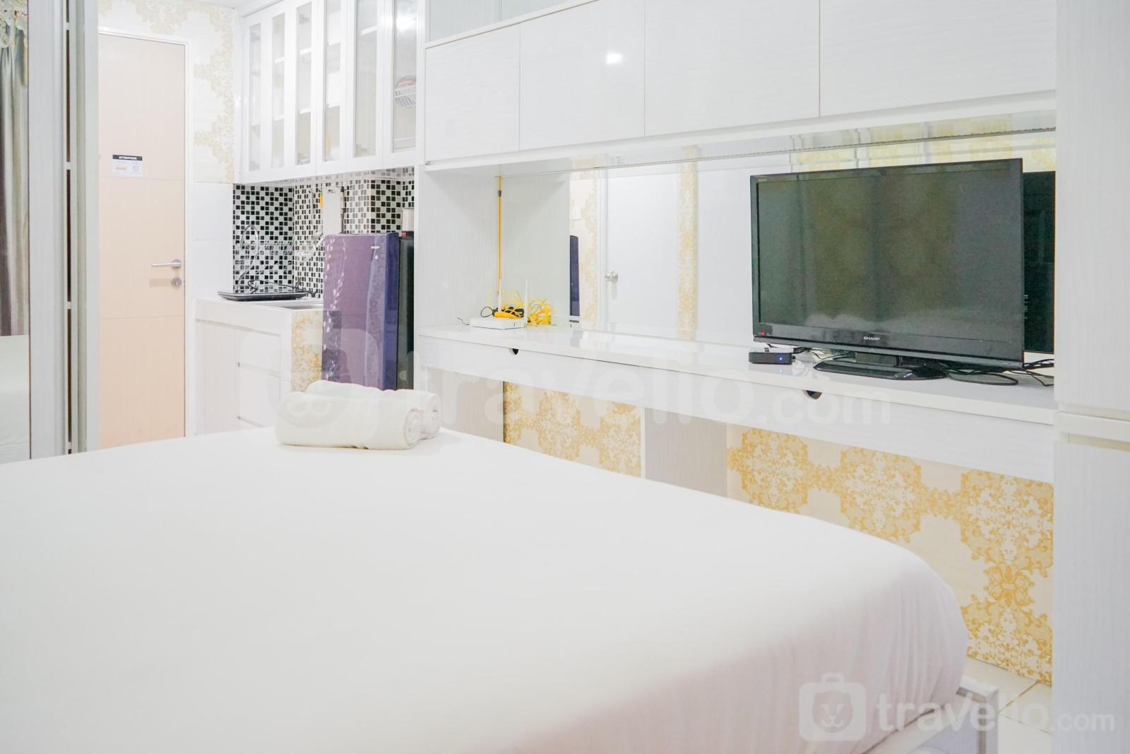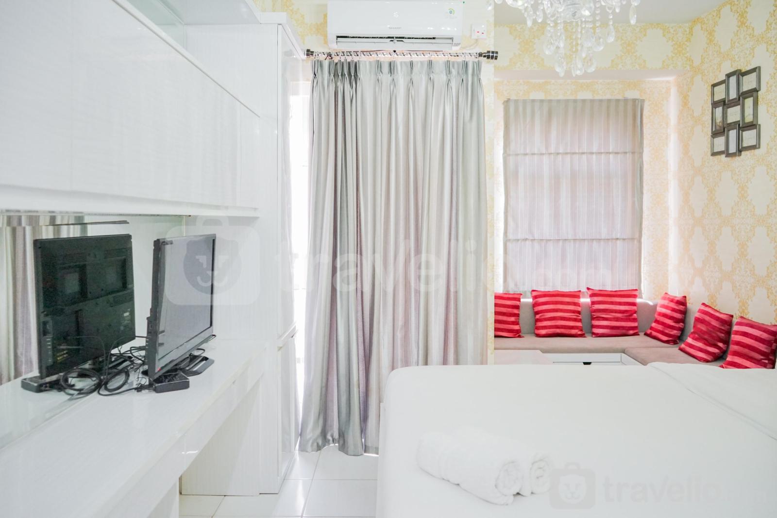 Unit apartemen ini juga menyediakan 01 kasur dengan masing-masing ukuran Queen Bed (160x200) berbalut linen kualitas hotel berbintang, pendingin ruangan, televisi, akses Wi-Fi gratis, perlengkapan mandi, peralatan makan dan memasak untuk menunjang kebutuhan harian Anda. Modern Furnished Studio Apartment at Ayodhya Residence By Travelio bisa disewa secara harian, bulanan, dan tahunan. Terdapat balkon dengan pemandangan. Ruangan apartemen ini berdesain modern. Dari hunian yang terletak di lantai 21 ini, Anda juga bisa menikmati pemandangan kota yang menawan.