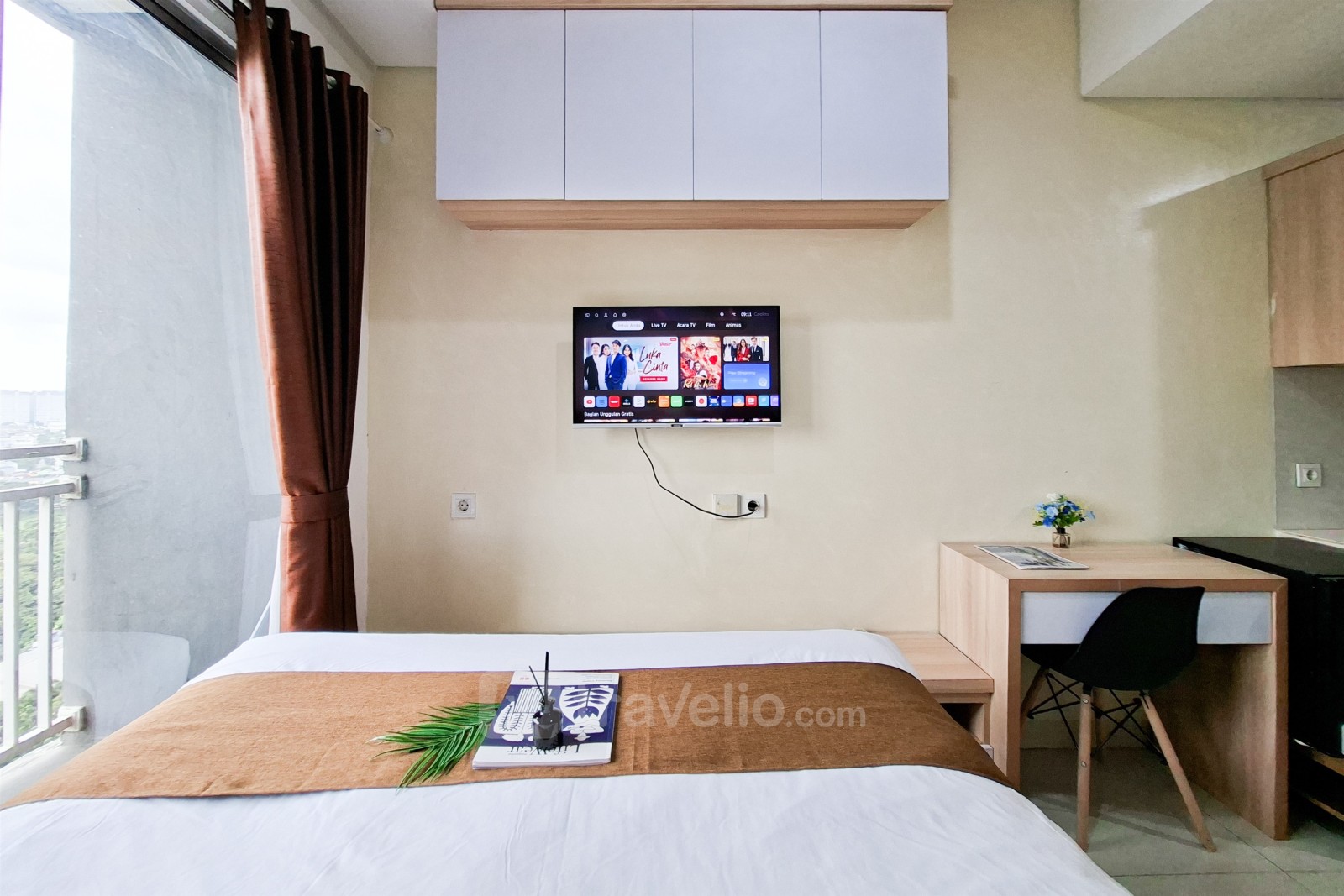 Unit ini memiliki desain modern dan dilengkapi dengan fasilitas utama seperti TV dan kulkas untuk menunjang kebutuhan harian. Gedung apartemen menyediakan fasilitas lengkap seperti keamanan 24 jam, sistem access card, kolam renang, gym, lounge, playground, dan lift, menciptakan lingkungan hunian yang aman dan nyaman. Lokasinya di Jl. MH. Thamrin memberikan kemudahan akses ke pusat perbelanjaan, perkantoran, kampus, serta transportasi umum di Tangerang dan Gading Serpong.