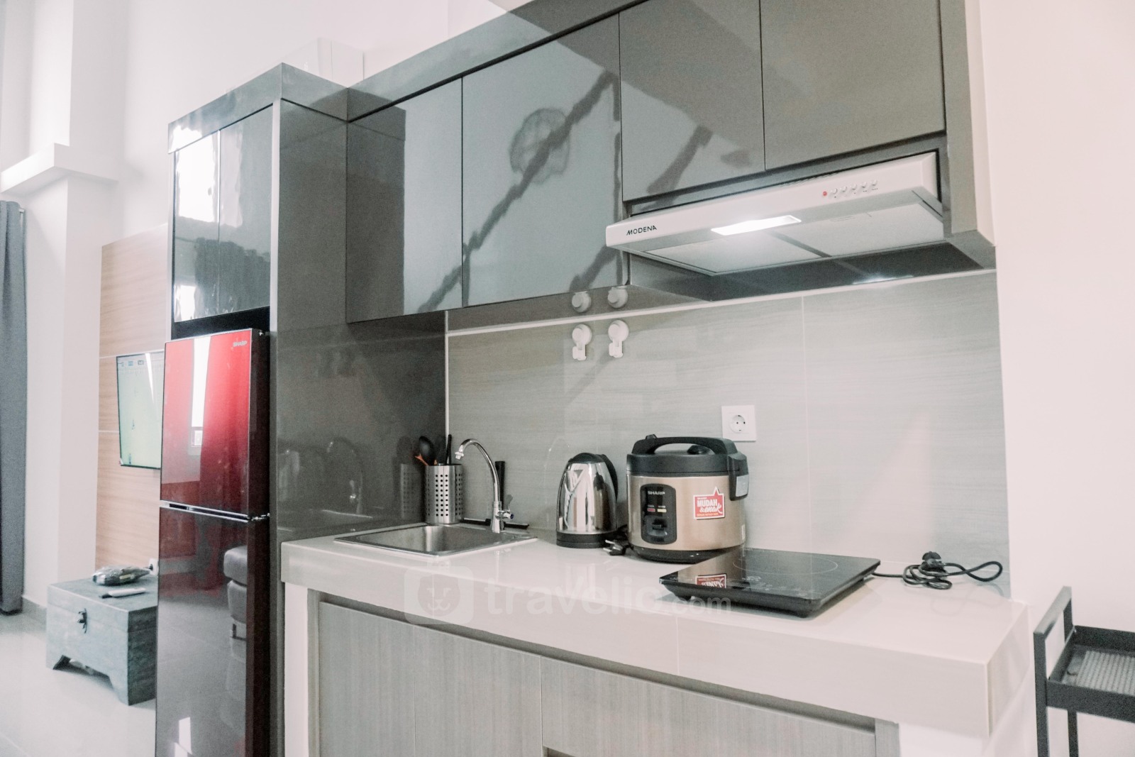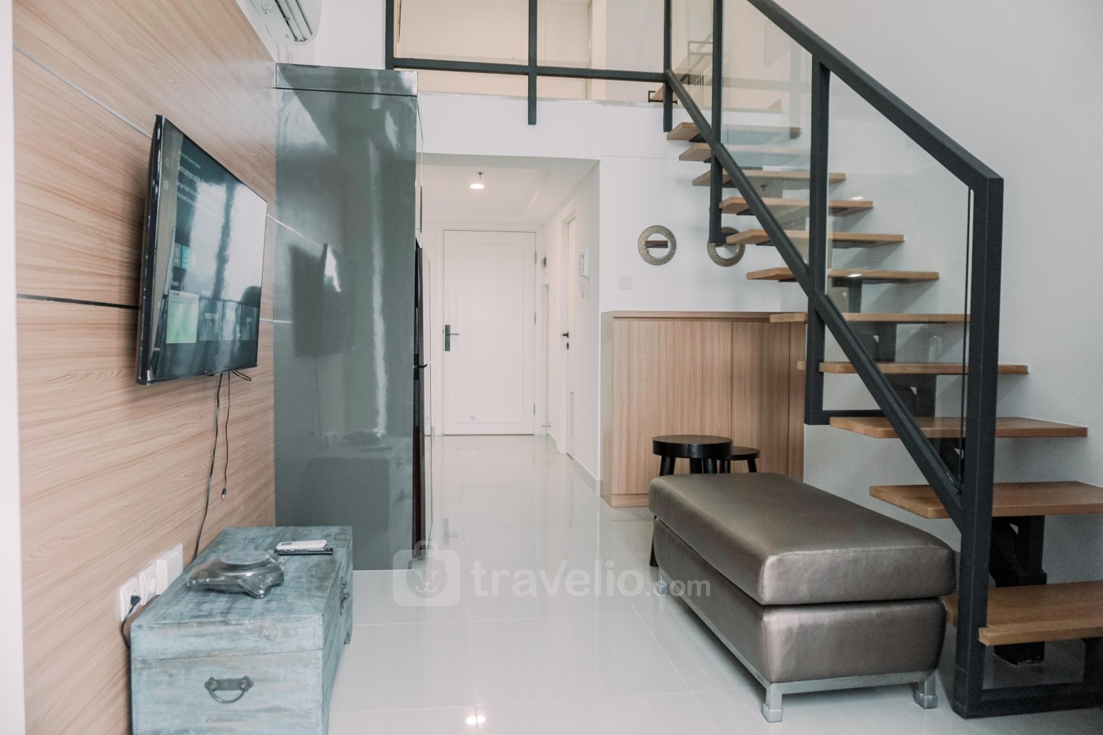 Modern Look Studio Loft Kingland Avenue Apartment By Travelio di Serpong menawarkan ruang tamu yang modern dan bergaya, ideal bagi mereka yang mencari kenyamanan kontemporer di Tangerang Selatan. Apartemen studio loft seluas 40,6 meter persegi di Jl. Raya Serpong memadukan desain modern dengan fungsionalitas, menampilkan kamar tidur studio dan kamar mandi lengkap. Terletak di Serpong, menyediakan lingkungan hidup yang apik dan nyaman bagi penghuninya.