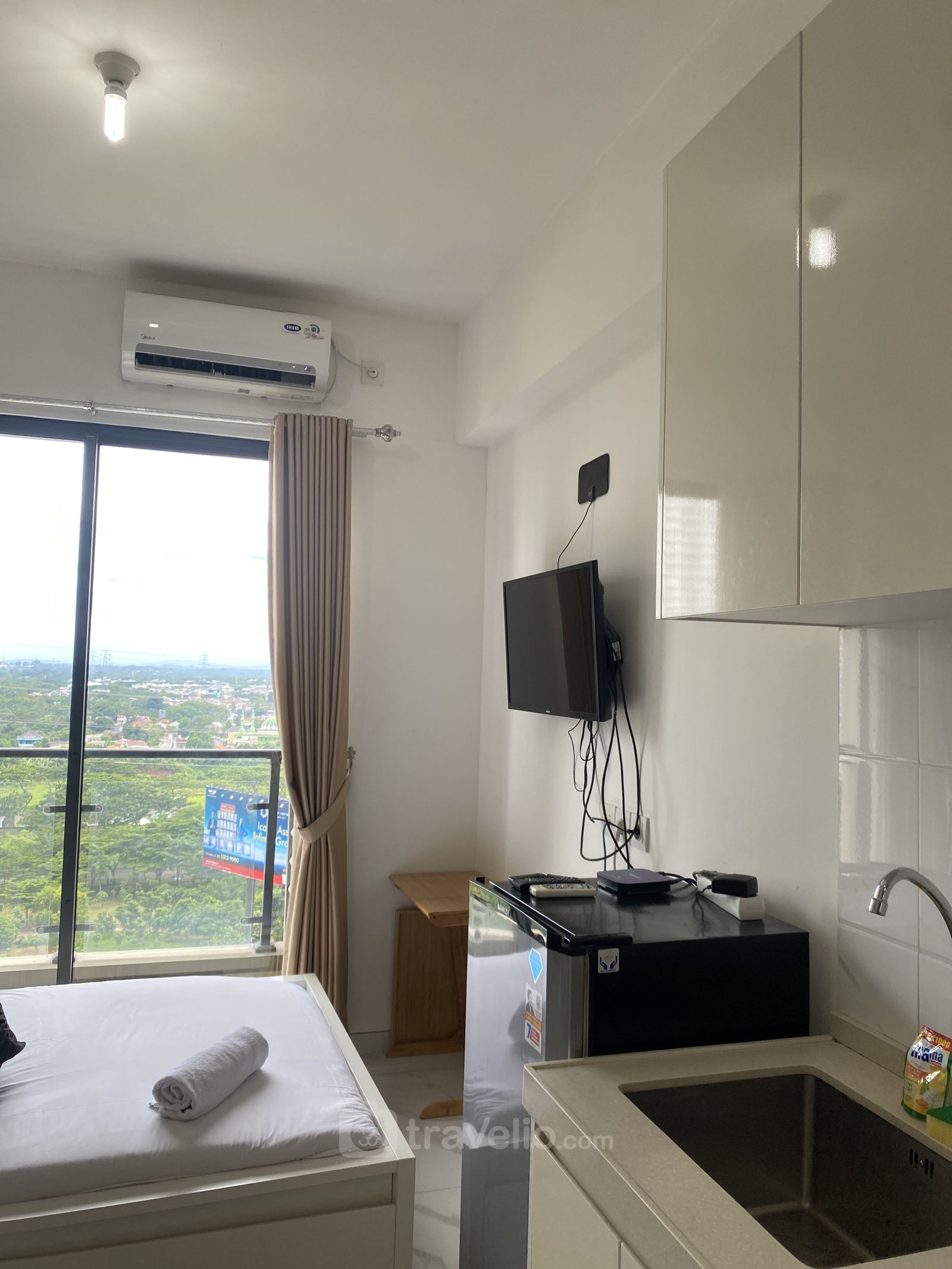 Unit apartemen yang bertipe StudioBR ini sangat sempurna untuk perjalanan liburan maupun bisnis. Selain itu, unit ini memiliki luas 20.49 meter persegi. Unit ini dilengkapi dengan Single Bed (100x200) yang dibalut dengan linen kualitas hotel bintang. Unit ini memiliki sentuhan dekorasi agar anda dapat merasa santai dan nyaman. Hal lain yang perlu diketahui, unit ini memiliki fasilitas dan peralatan yang akan membuat pengalaman menginap anda lebih menarik, seperti pemanas air. Unit apartemen ini tersedia untuk disewa secara harian, bulanan, dan tahunan.