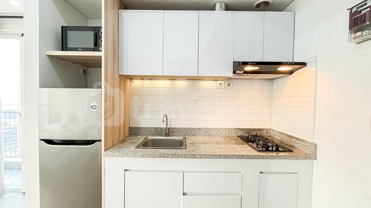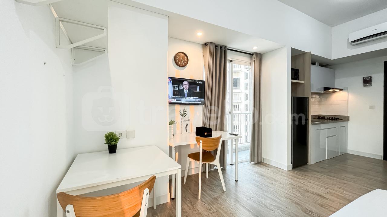 Dengan luas 33.67 sqm, unit ini dilengkapi berbagai fasilitas esensial seperti TV, kulkas, microwave, water heater, dan dapur pribadi yang siap menunjang kebutuhan harian Anda. Dirancang dengan tata ruang efisien dan pencahayaan alami yang melimpah, apartemen ini memberikan nuansa hangat dan homey yang membuat Anda betah berlama-lama.