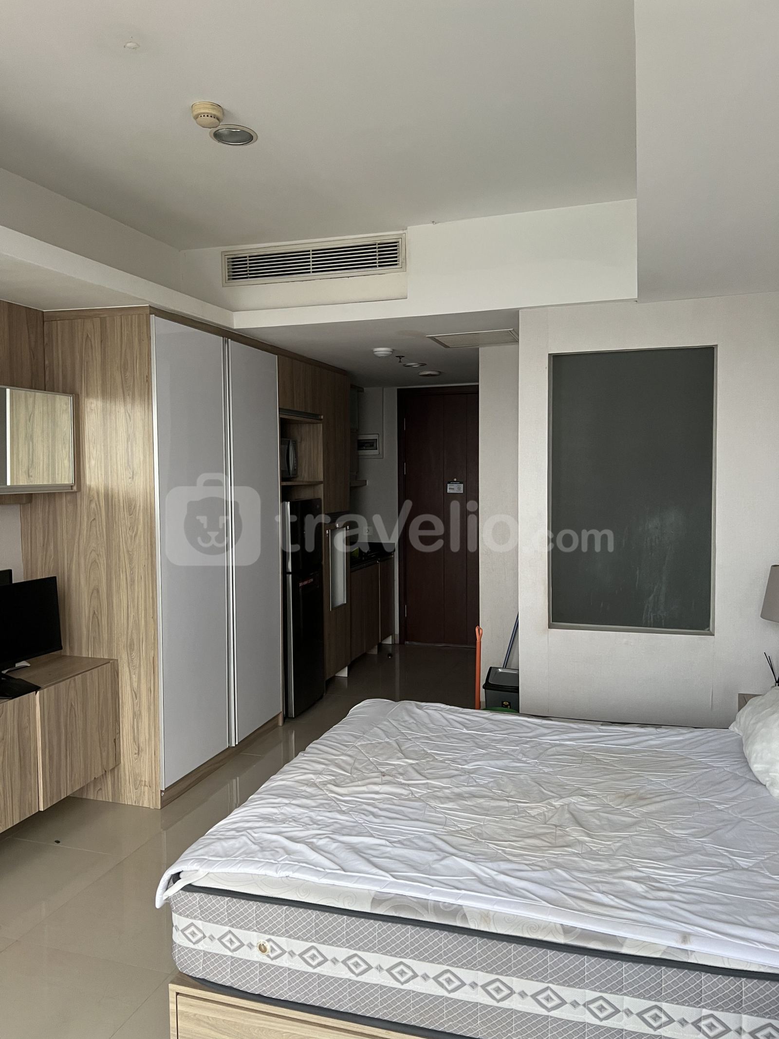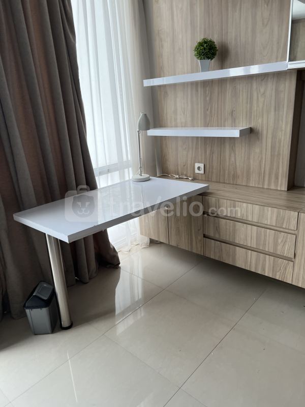 Unit apartemen ini juga menyediakan 1 kasur dengan ukuran Queen (160x200) berbalut linen kualitas hotel berbintang, pendingin ruangan, televisi, akses Wi-Fi gratis, perlengkapan mandi, peralatan makan dan memasak untuk menunjang kebutuhan harian Anda. Studio Apartment with Mall Access at U Residence By Travelio bisa disewa secara harian, bulanan, dan tahunan. Kamar mandi dilengkapi dengan pemanas air. Ruangan apartemen ini berdesain modern.
