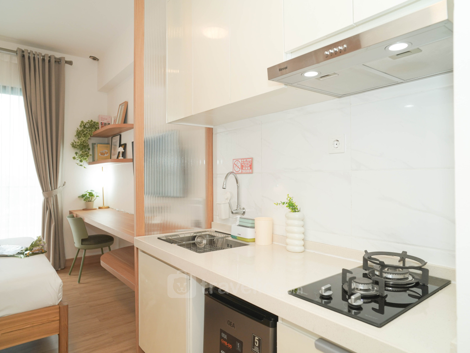 Nikmati hunian modern yang tenang dan aestetik di Studio Japandi Areum Residence Sky House BSD Apartment. Mengusung konsep Japandi yang memadukan kesederhanaan gaya Jepang dan kehangatan Skandinavia, unit studio ini menghadirkan suasana nyaman dan rapi. Dengan luas 23,33 sqm, tata ruang dirancang efisien sehingga terasa lega dan ideal untuk individu, mahasiswa, maupun pasangan muda.