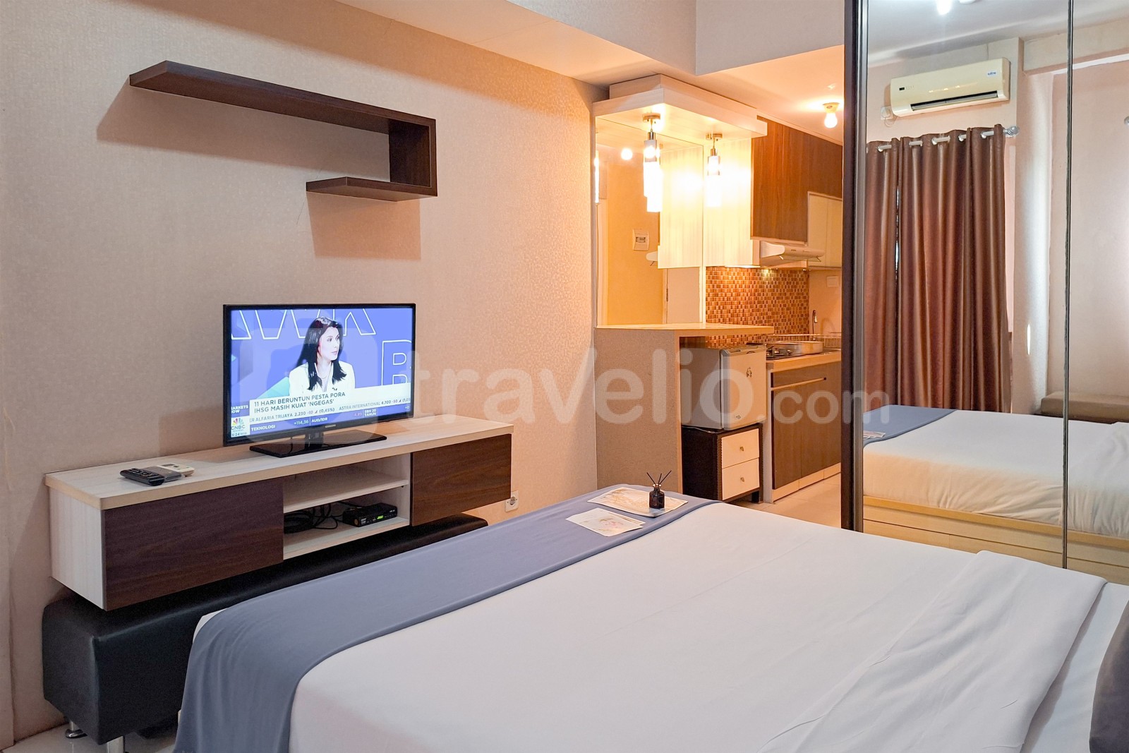 Unit ini dilengkapi dengan fasilitas penting seperti TV, kulkas, dan water heater, untuk kenyamanan sehari-hari. Penghuni juga dapat menikmati berbagai fasilitas gedung, termasuk keamanan 24 jam, ATM di lokasi, akses kartu, kafe, lift, layanan laundry berbayar, minimarket, area bermain anak, restoran, serta kolam renang yang nyaman untuk relaksasi.