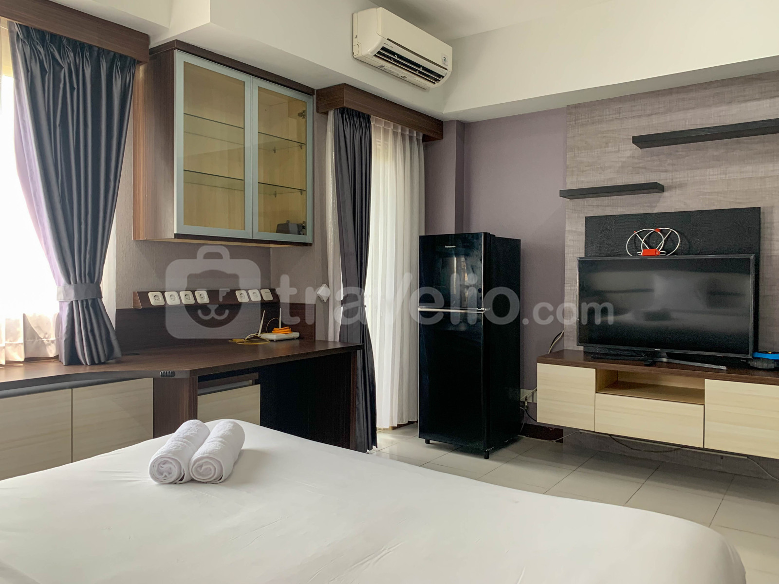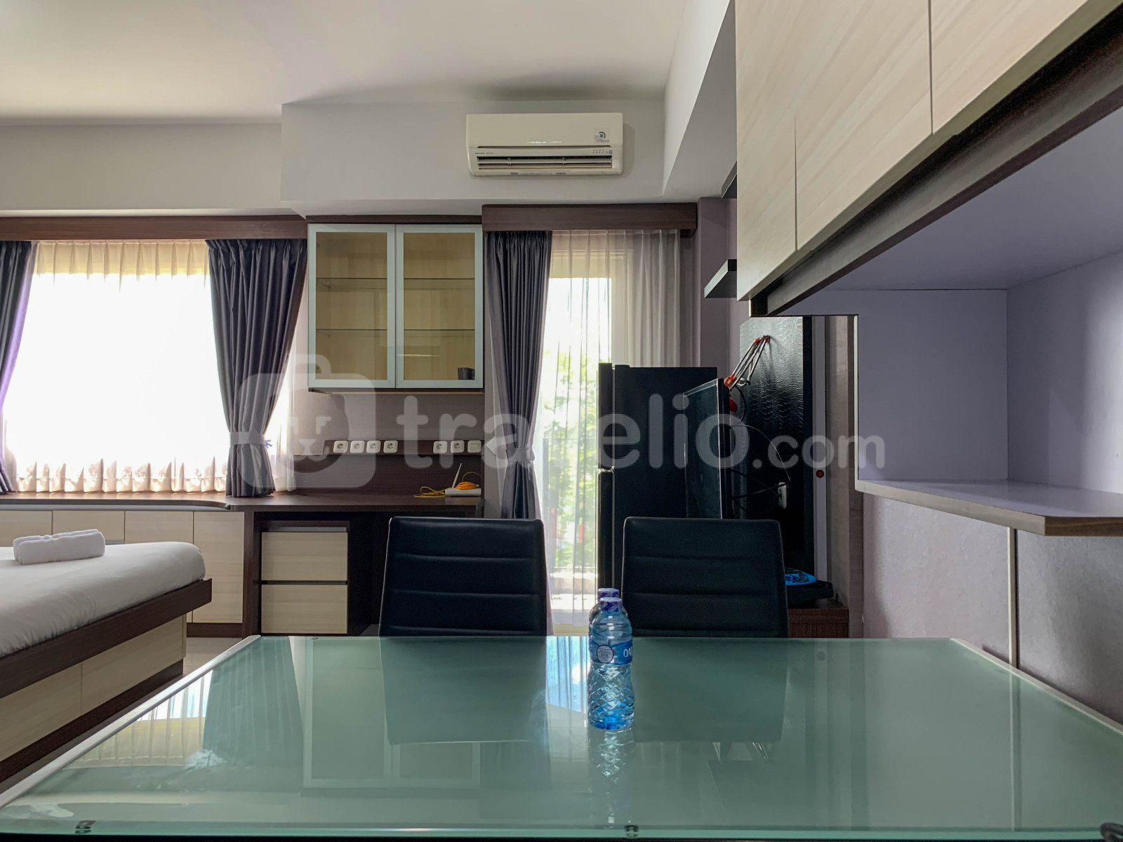 Unit apartemen bertipe StudioBR ini didesain dengan yang membuat anda akan merasa seperti di rumah sendiri. Unit ini dilengkapi dengan fasilitas dalam ruangan yang akan menambah pengalaman menginap anda lebih berkesan. Selain itu, unit ini juga dilengkapi dengan kasur Queen Bed (160x200) yang dibalut dengan linen berkualitas hotel bintang lima. Tranquil and Tidy Studio Apartment at Scientia Residence By Travelio ini terletak strategis di Kawasan Gading Serpong yang memiliki banyak lokasi-lokasi menarik seperti Indonesia Convention Exhibition. Fasilitas penunjang yang disediakan oleh gedung apartemen ini juga turut menambah pengalaman menginap anda semakin nyaman. Apartemen ini memiliki fasilitas seperti Keamanan 24 Jam, ATM, Kartu Akses, CCTV Di Area Publik, Kedai Kopi, Lift, Pusat Kebugaran, Lintasan Lari, Area Bermain Anak, Supermarket, Kolam Renang yang dapat anda gunakan selama anda menginap di sini.