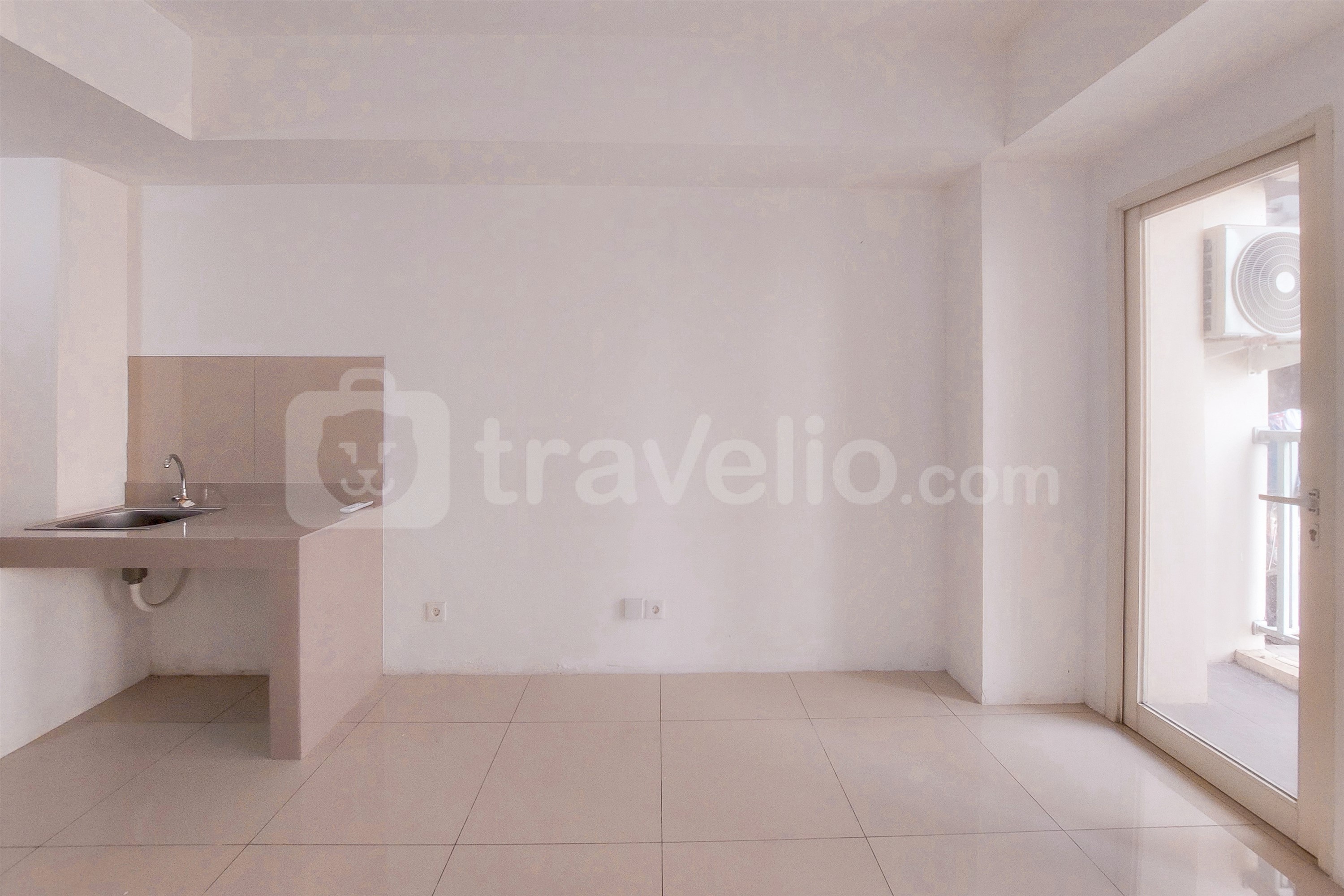 Unit ini belum dilengkapi furnitur, namun tersedia AC untuk memberikan suasana yang sejuk dan nyaman.