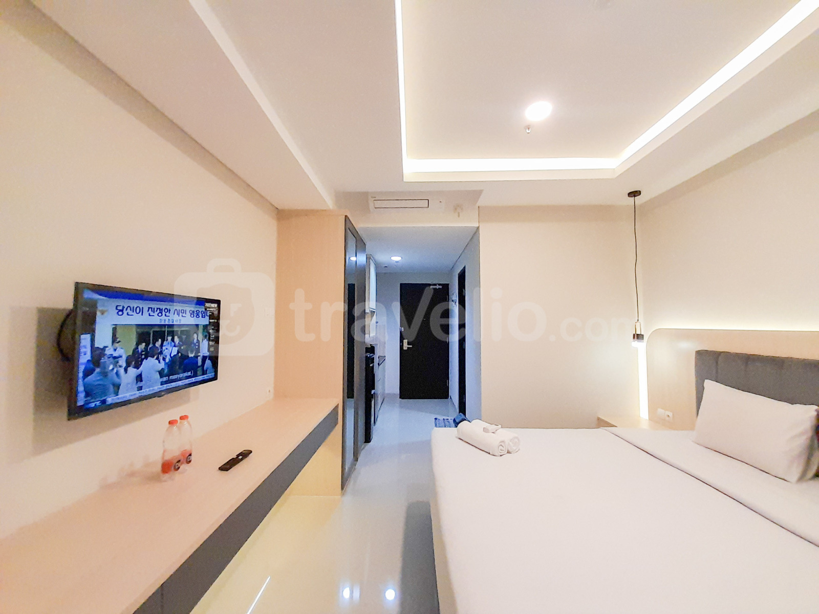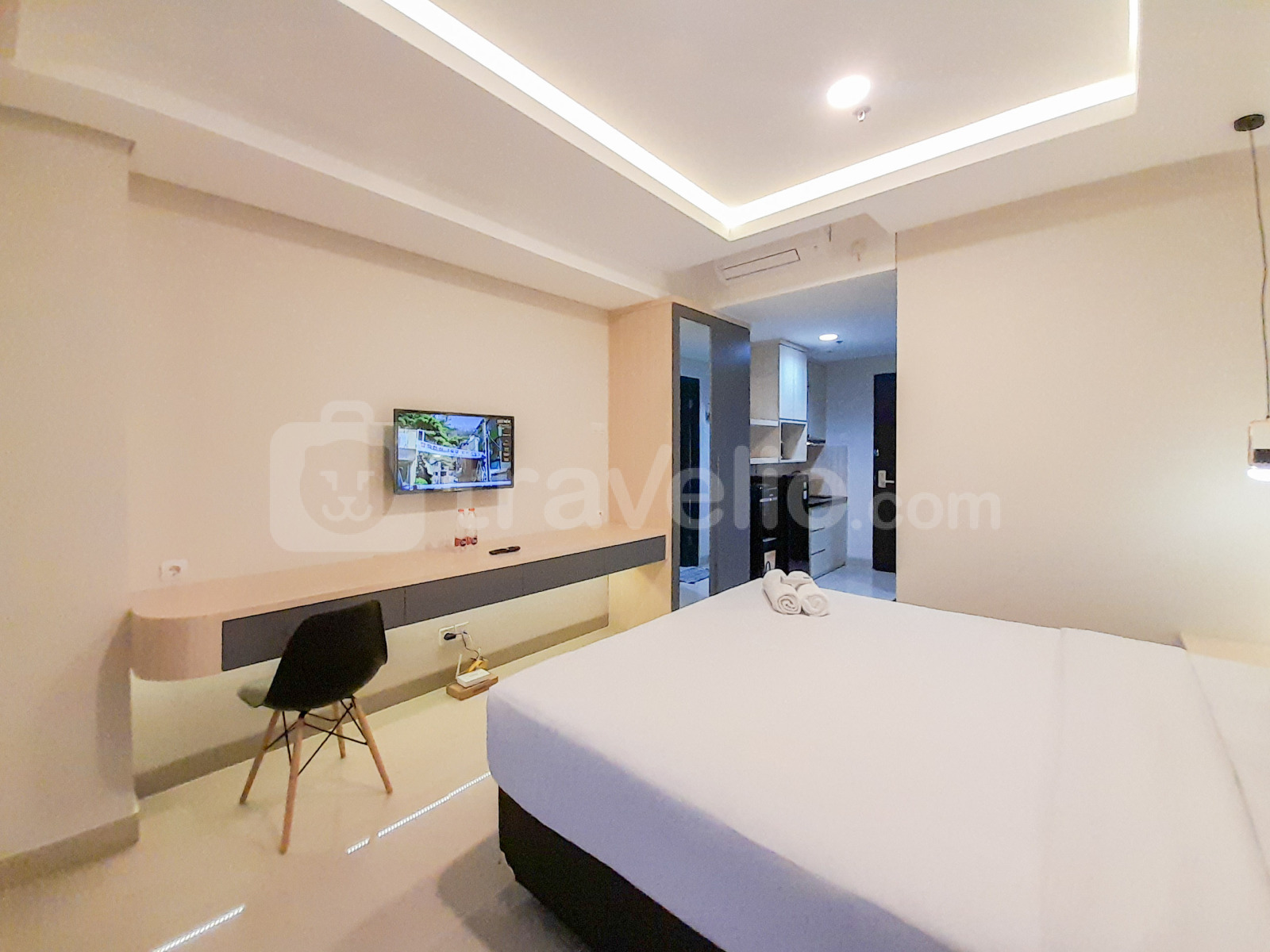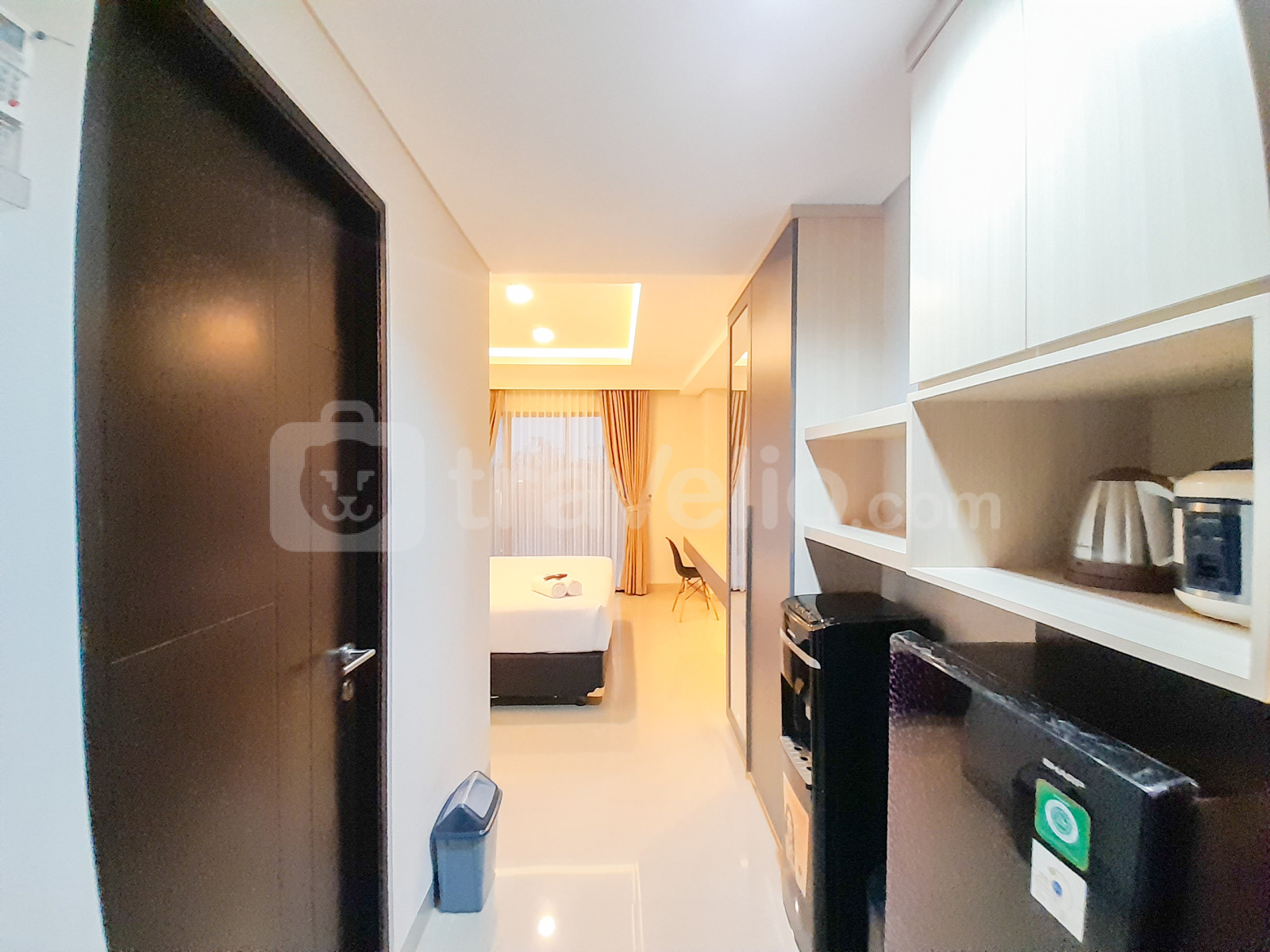 Unit ini dilengkapi dengan fasilitas penting seperti TV, kulkas, dan pemanas air. Penghuni juga memiliki akses ke fasilitas gedung seperti kafe, pusat kebugaran, fasilitas rapat, restoran, dan kolam renang, menjamin pengalaman tinggal yang nyaman dan menyenangkan.