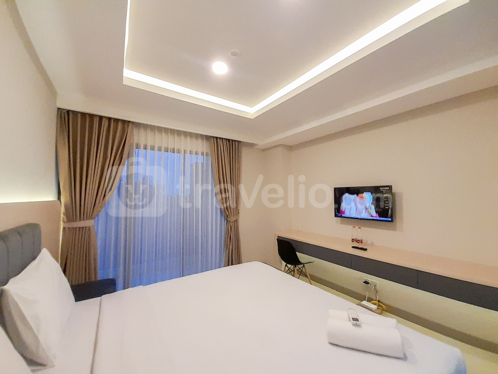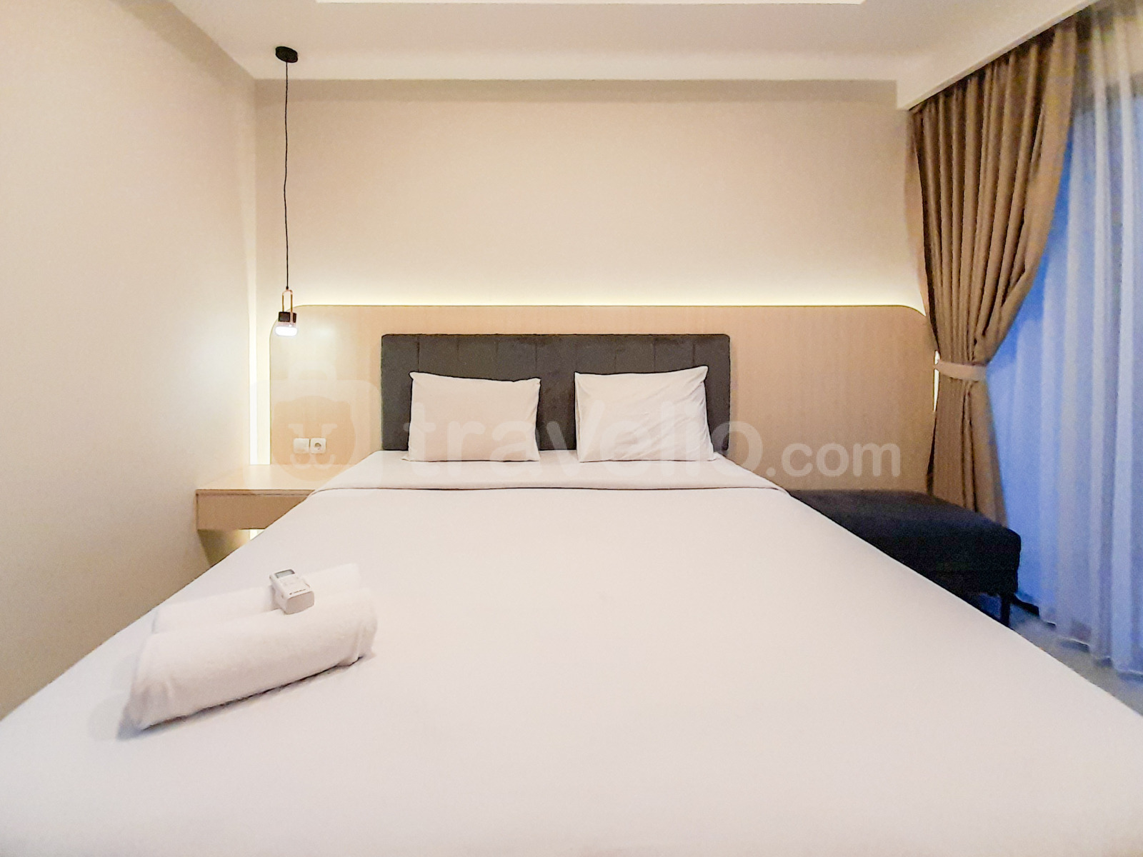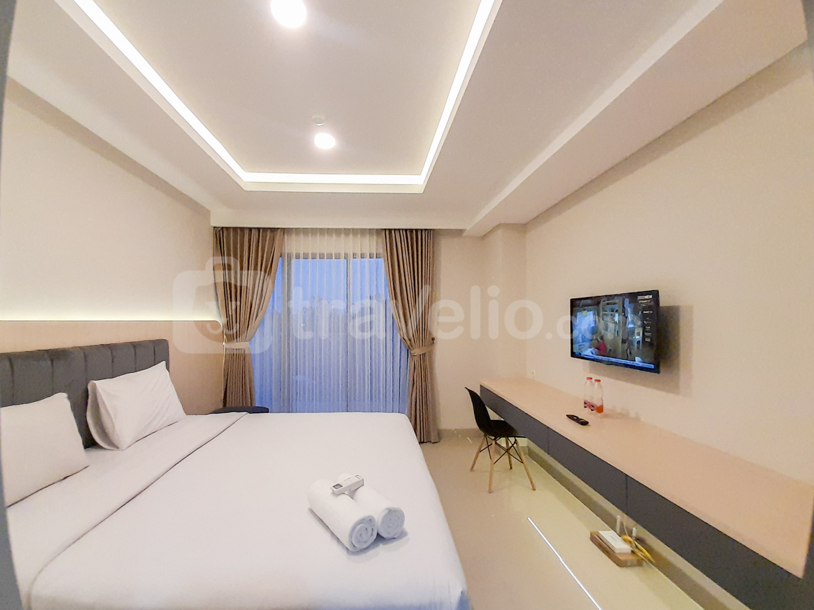 Unit ini dilengkapi dengan fasilitas penting seperti TV, kulkas, dan pemanas air. Penghuni juga memiliki akses ke fasilitas gedung seperti kafe, pusat kebugaran, fasilitas rapat, restoran, dan kolam renang, menjamin pengalaman tinggal yang nyaman dan menyenangkan.