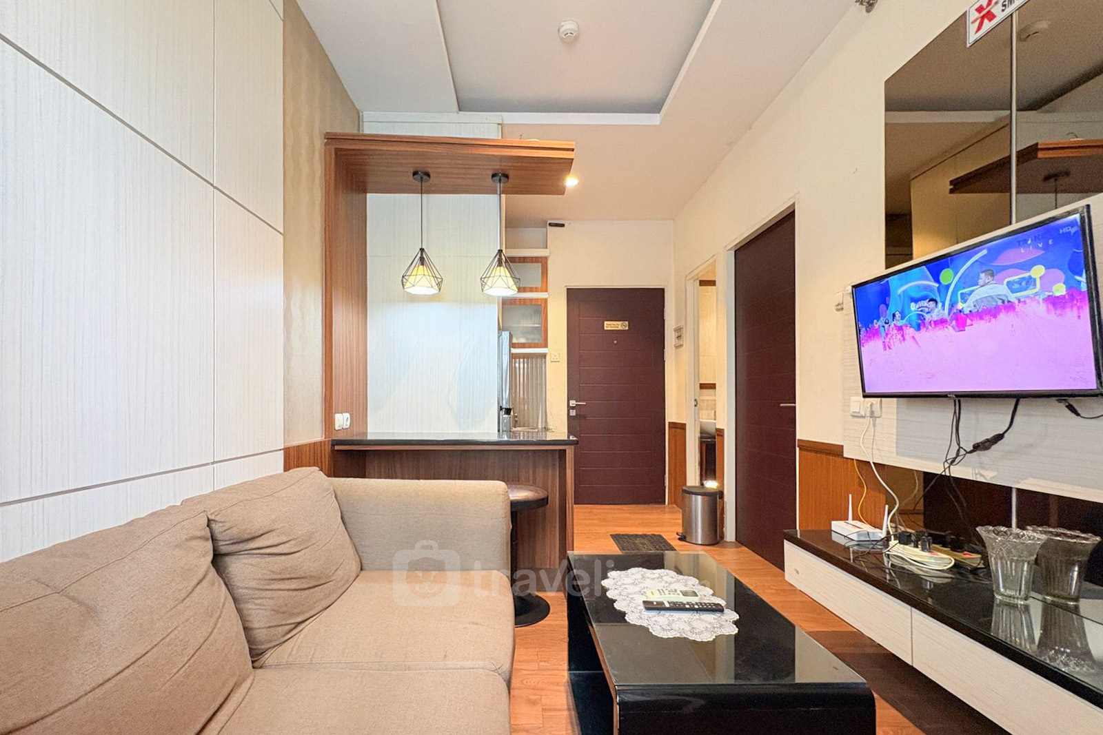 Dengan luas 38,55 sqm, unit ini dirancang secara optimal untuk memberikan kenyamanan dan fungsi ruang yang maksimal. Terdapat dua kamar tidur, satu kamar mandi fungsional, serta ruang santai yang nyaman untuk aktivitas sehari-hari. Unit ini dilengkapi dengan fasilitas seperti TV, kulkas, dan water heater sehingga siap untuk langsung dihuni.